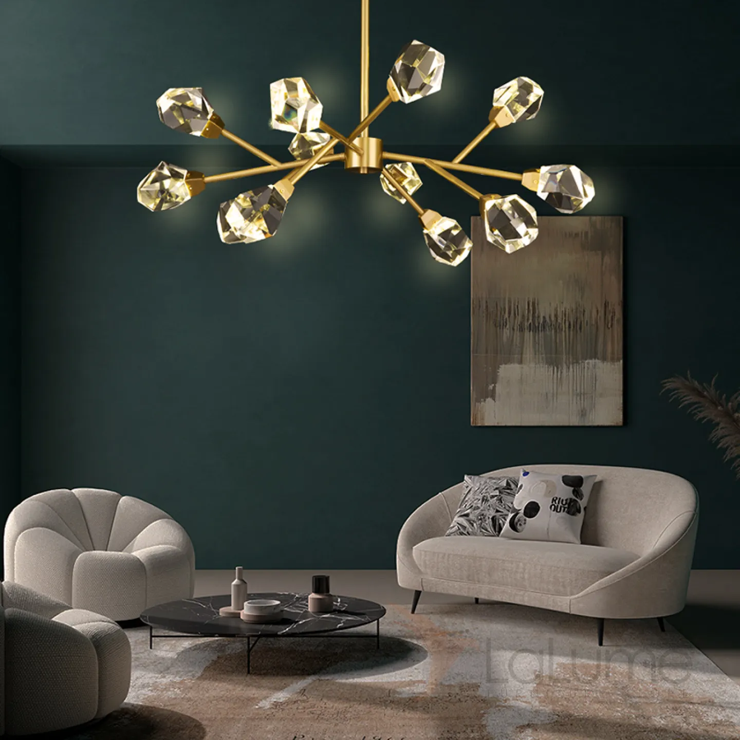 Люксовая люстра с плафонами из хрусталя K9 в форме кристаллов, расположенными на держателях древовидной формы CRISTEL A