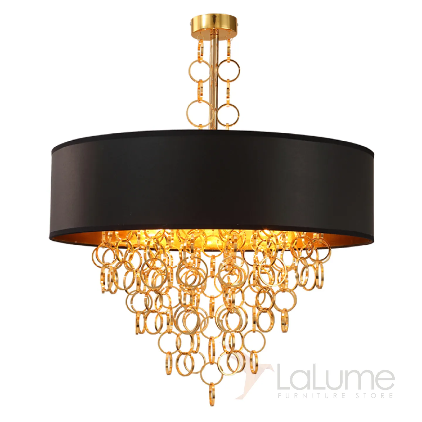 Люстра с черным текстильным абажуром и подвесным декором из собранных в цепочки колец RENATA