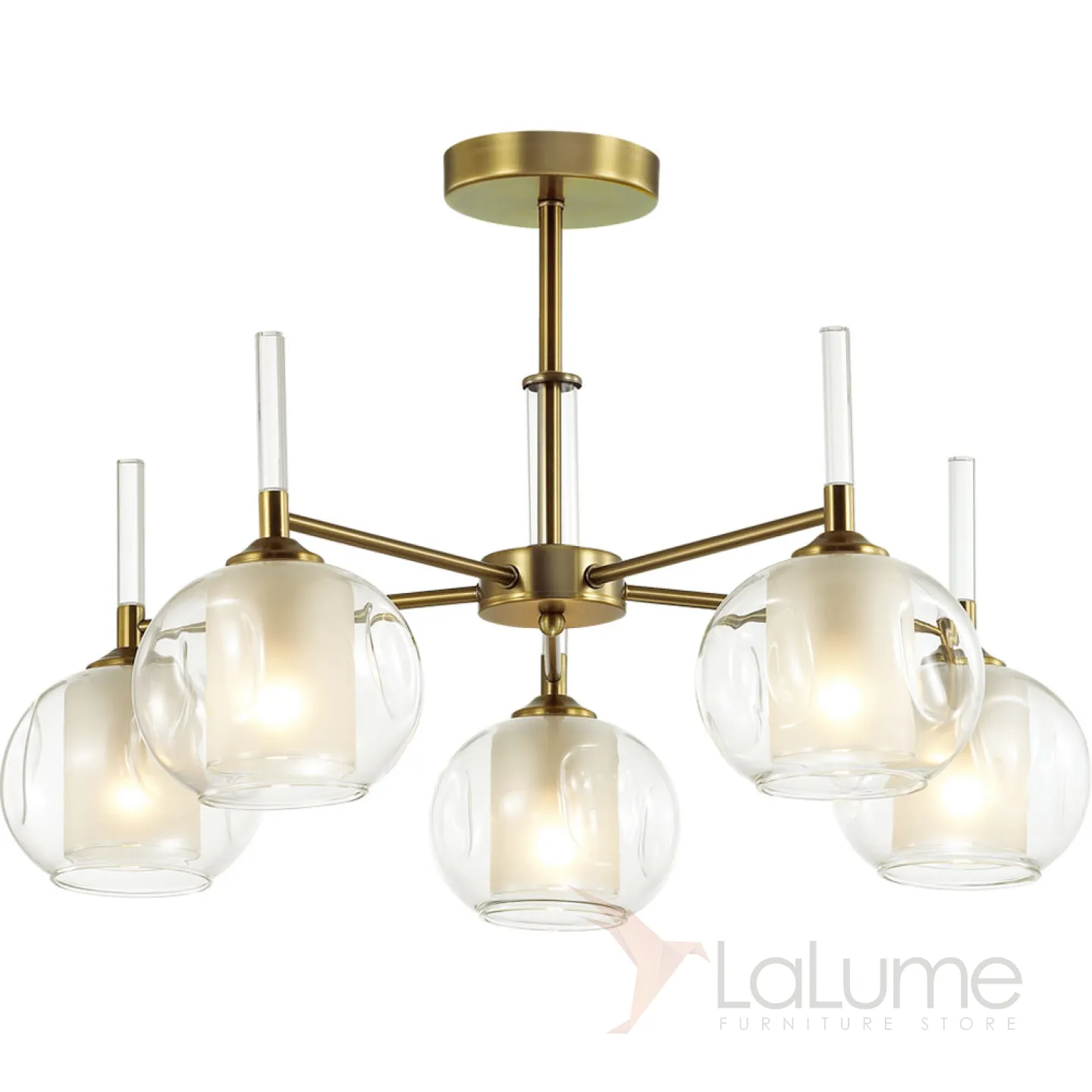 Люстра с двойными плафонами и стеклянными навершиями с эффектом трещин KIFER