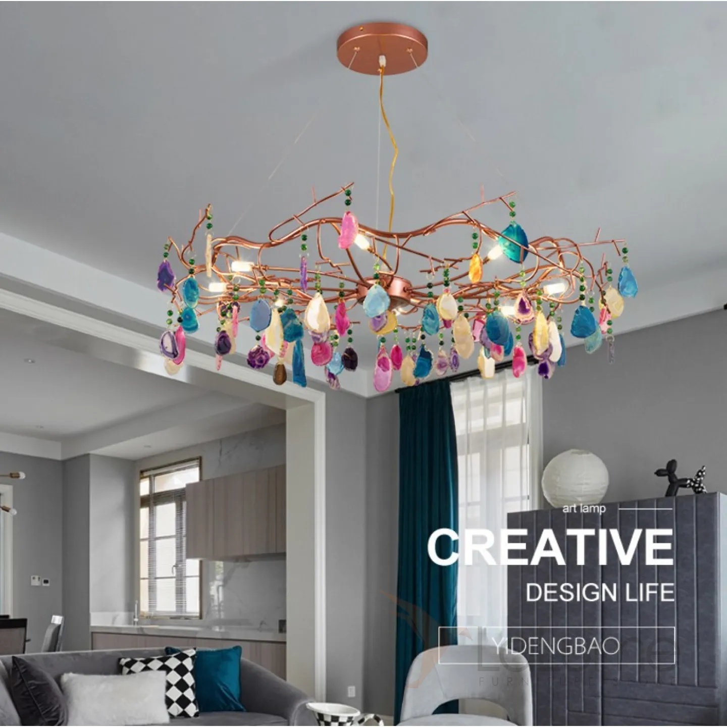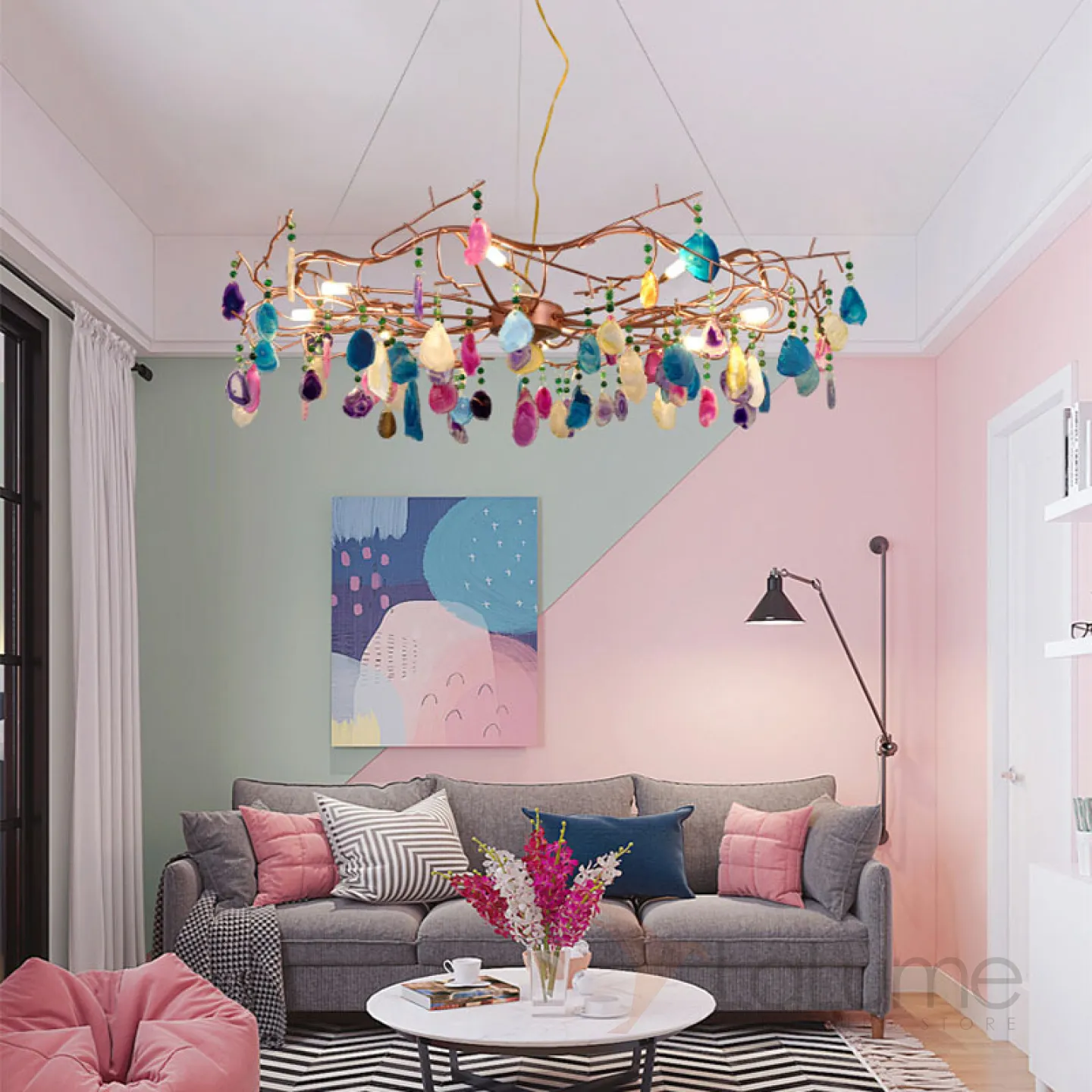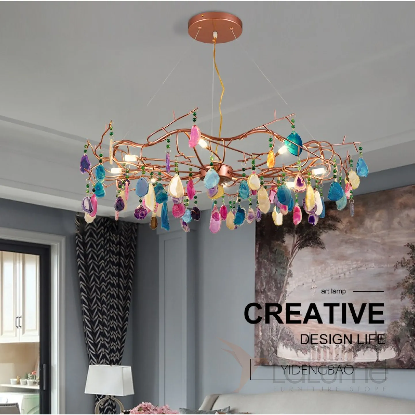 Люстра с растительными мотивами из цветного натурального агата на струнном подвесе AGATE 9 от LaLume