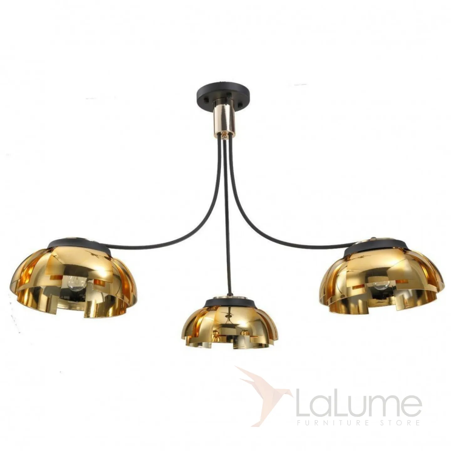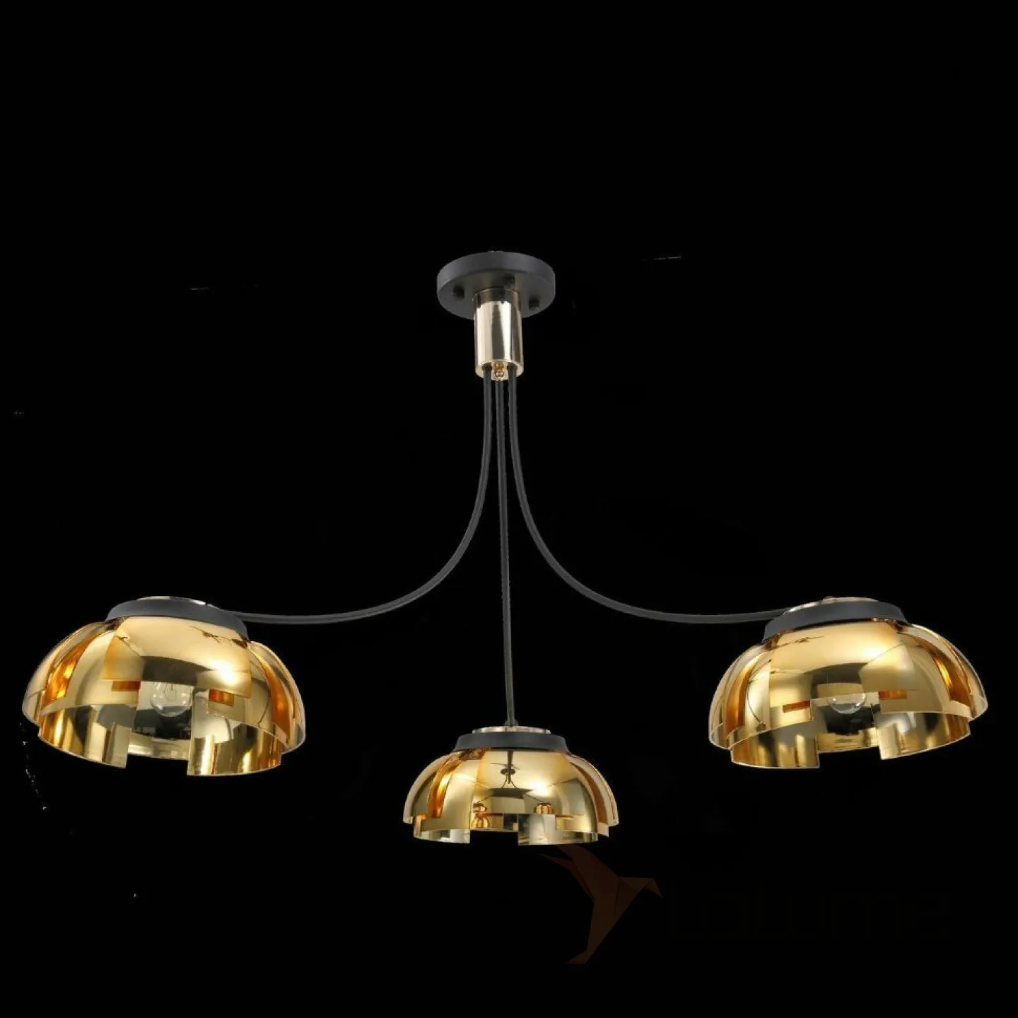 Люстра с золотыми плафонами из прямоугольных пластин на выгнутых рожках PIATO