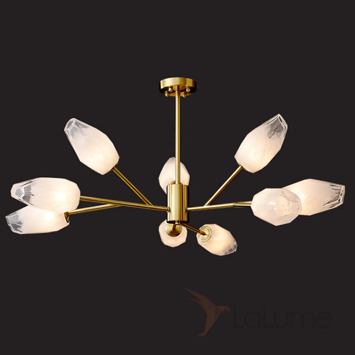 Люстра со стеклянными плафонами в форме полупрозрачных неограненных кристаллов на ветвистом каркасе SELESTE
