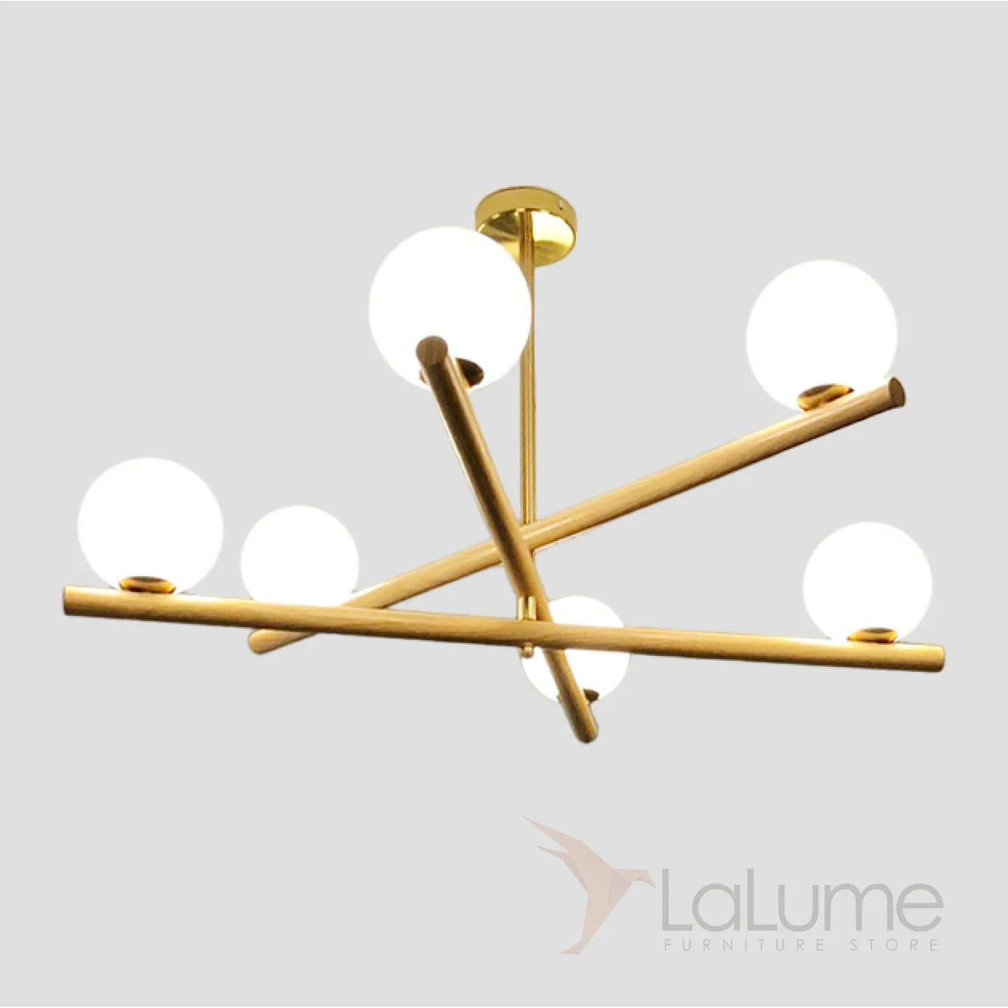 Люстра со стеклянными шарообразными плафонами на деревянных перекрещенных рожках PRIMA