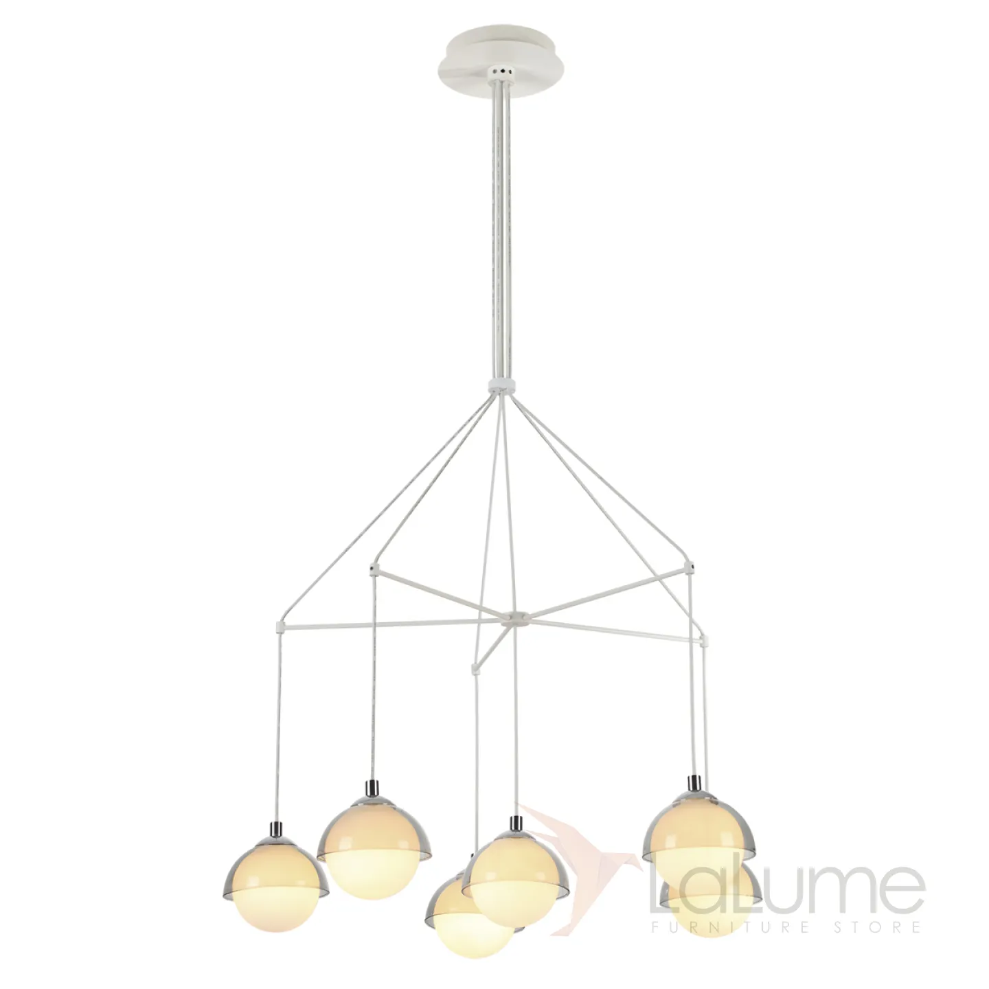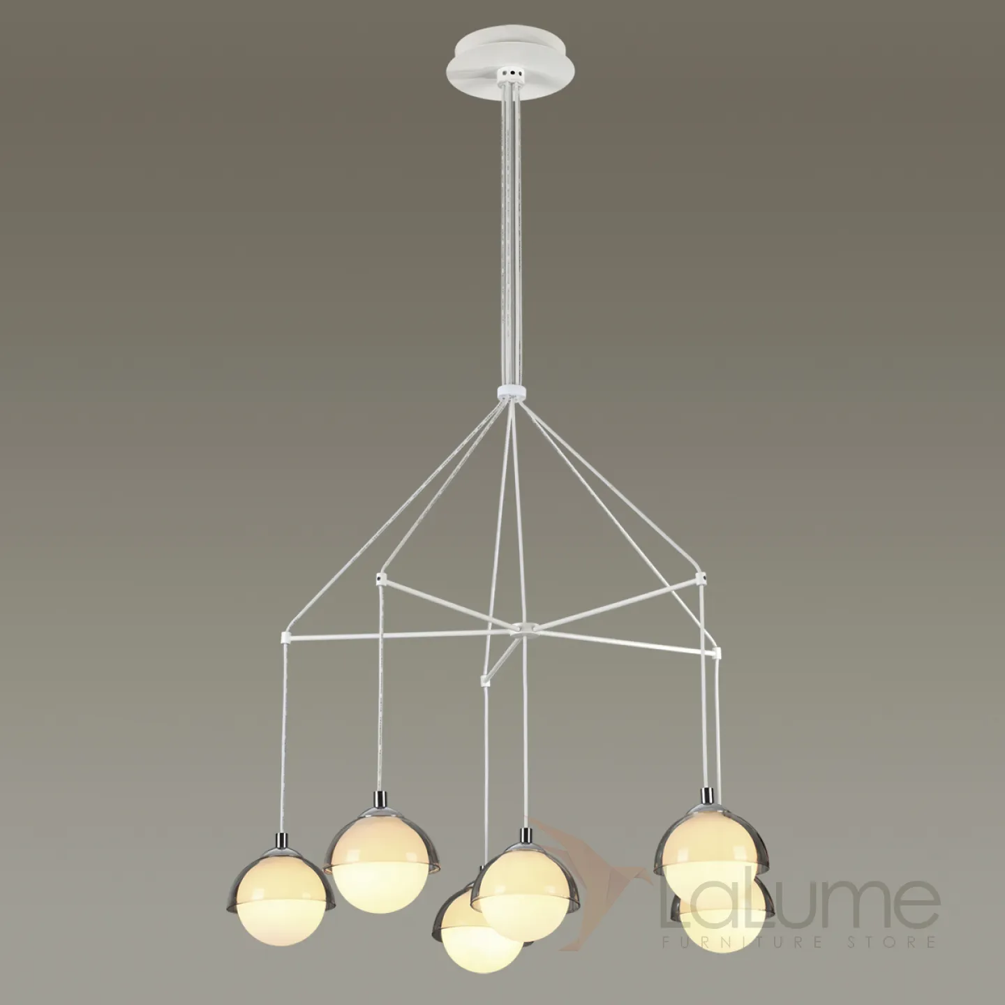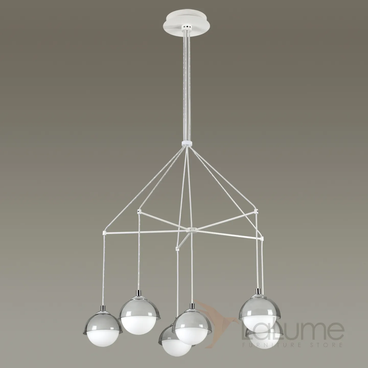 Люстра в виде комбинации подвесных шарообразных плафонов под полусферами из прозрачного стекла AGDER