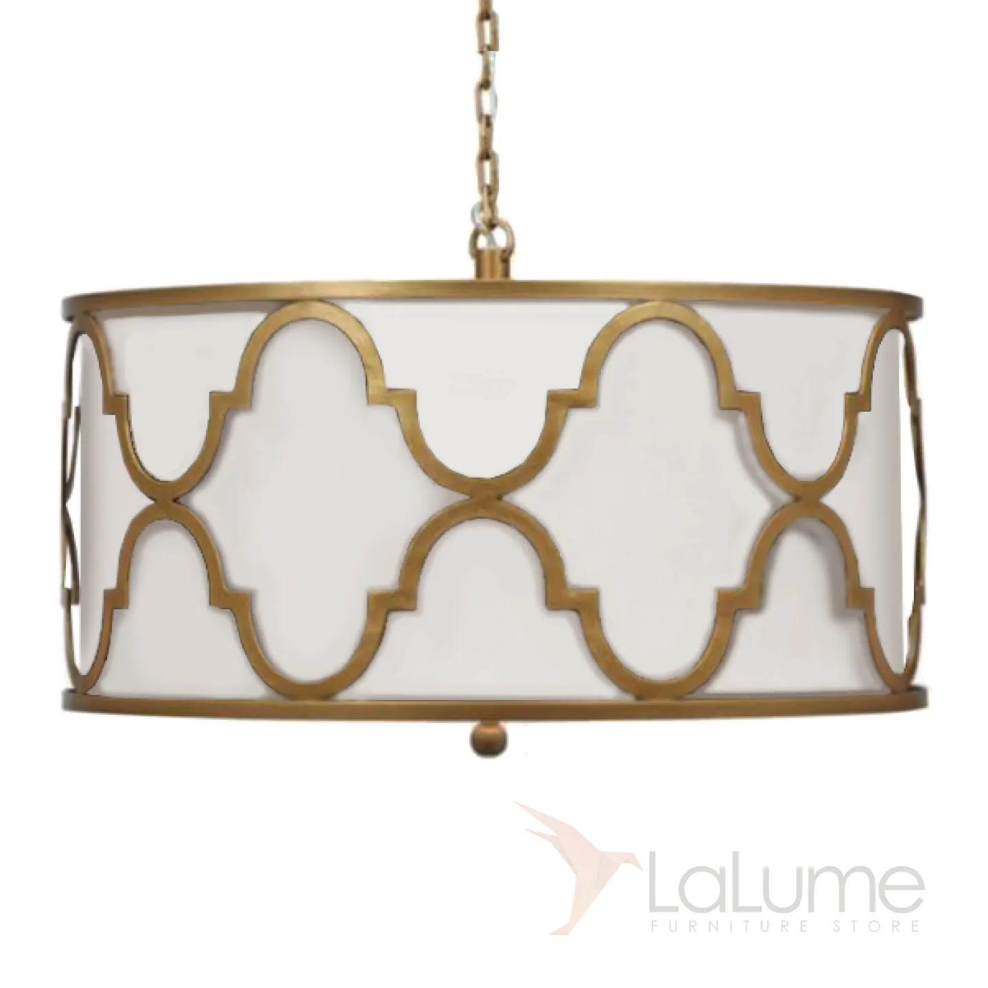 Люстра White Shade Gold Quatrefoil Overlay Drum Pendant от LaLume
