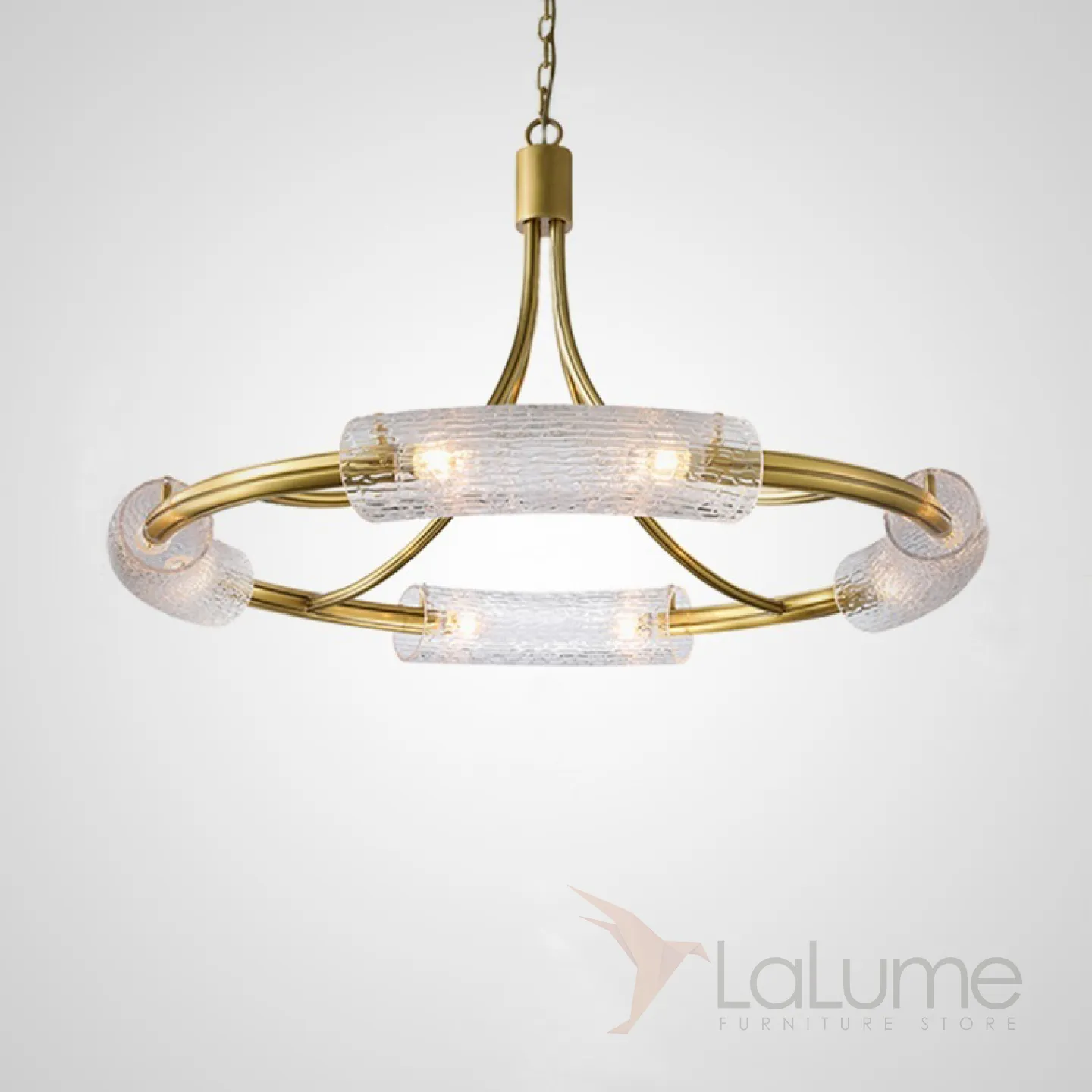 Кольцевая люстра из металла и плафонами из рифленого стекла в форме цилиндра MAGDA