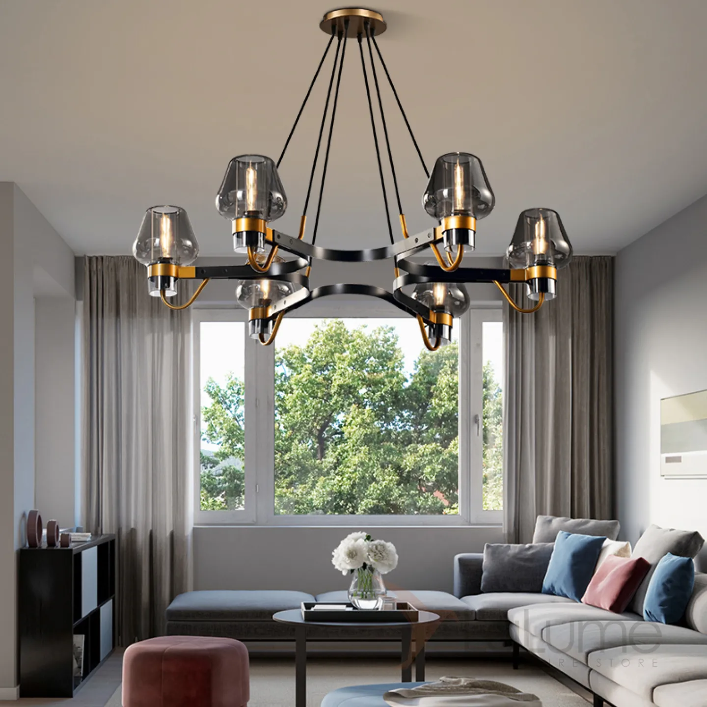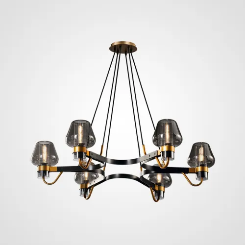 Серия постмодерновых люстр с конфигурациями на любой вкус и цвет, что характерно подчеркивают Плафоны и абажуры разных оттенков.