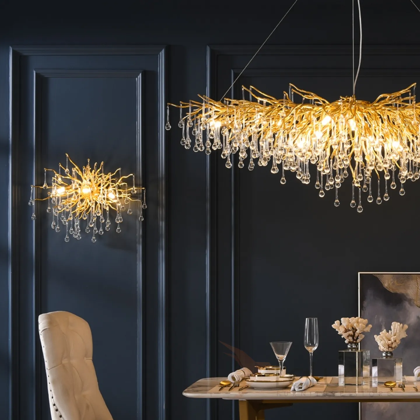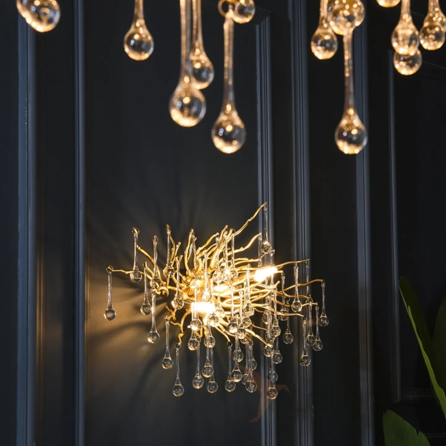 Настенный светильник с ветвистым каркасом и стеклянными каплевидными подвесками MARIAN WALL
