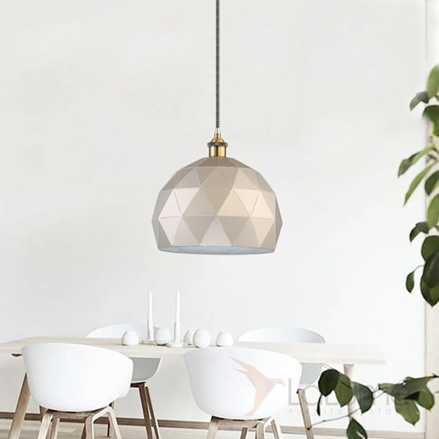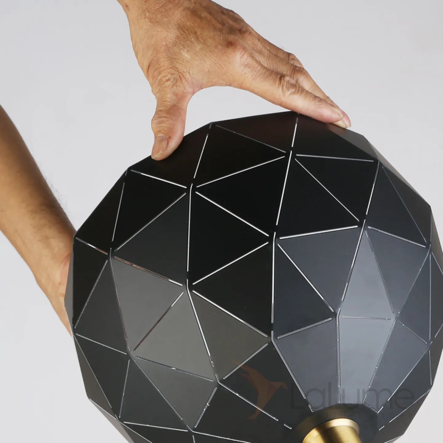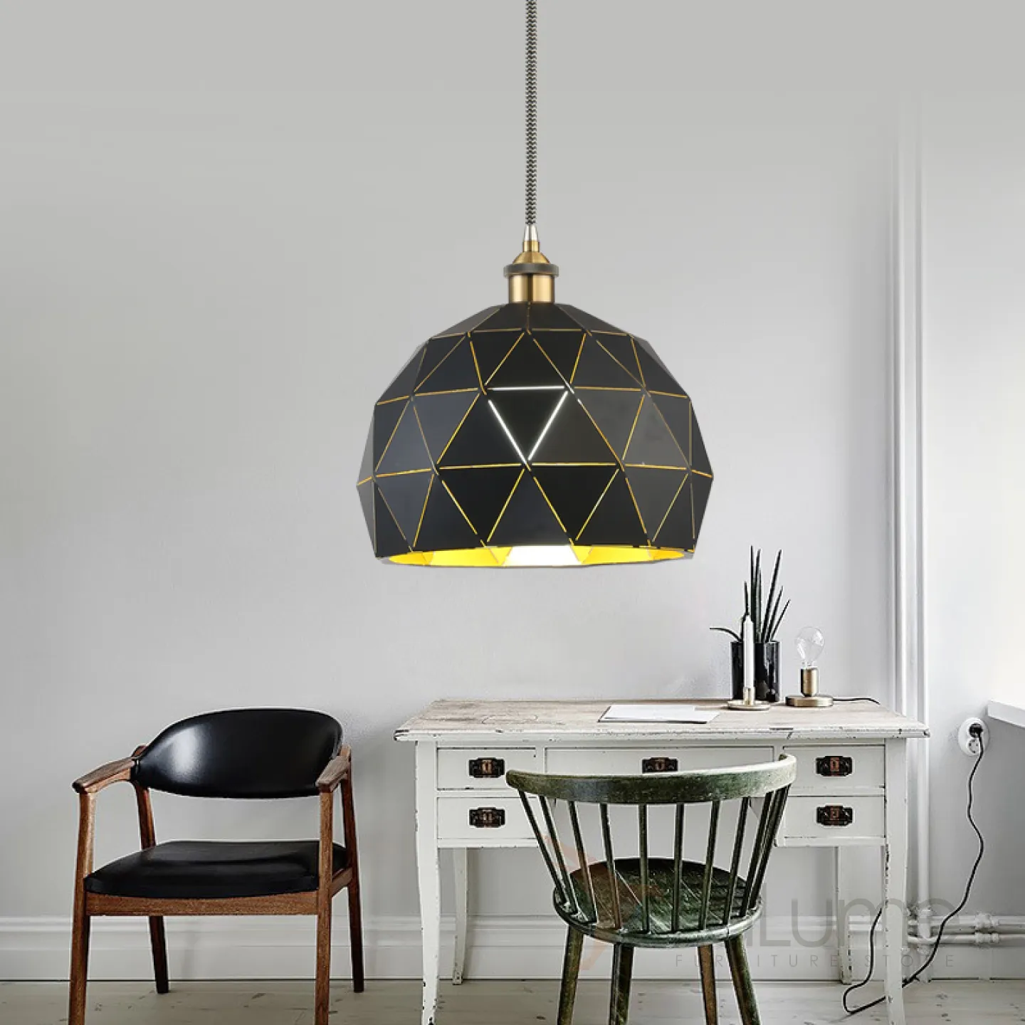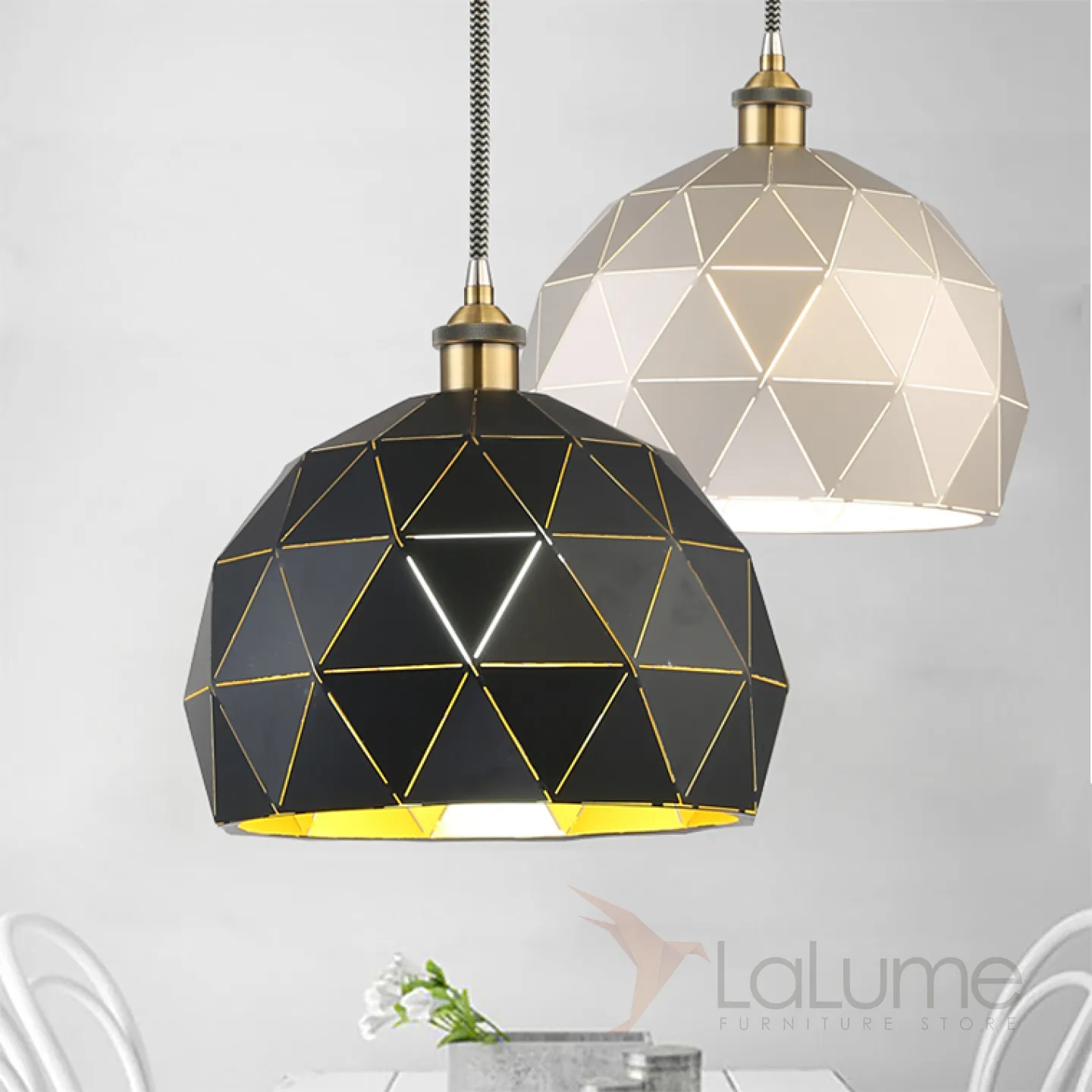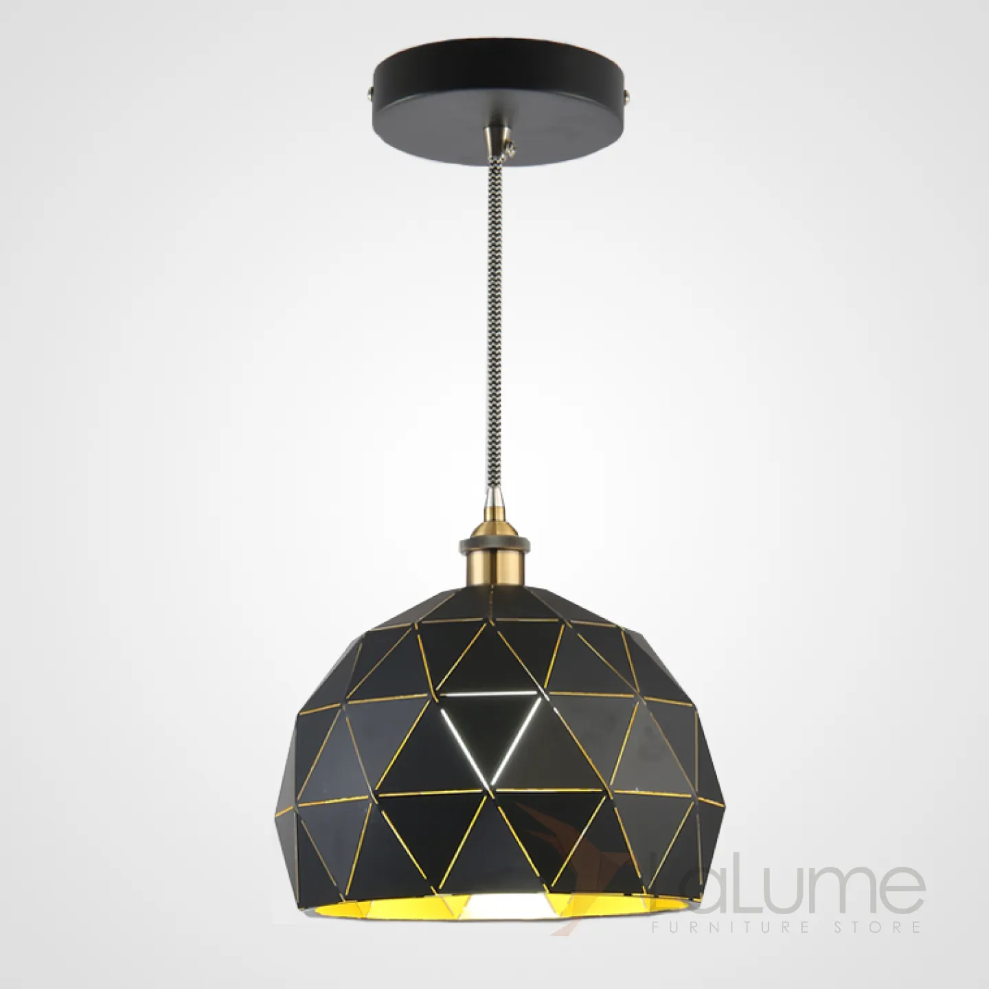Дизайнерский светильник с металлическим абажуром. Прорези в абажуре, образующие оригинальный геометрический узор, создают интересную игру светотени на стенах и потолке. Этот светильник никогда не превратится в скучный декор в вашем помещении!