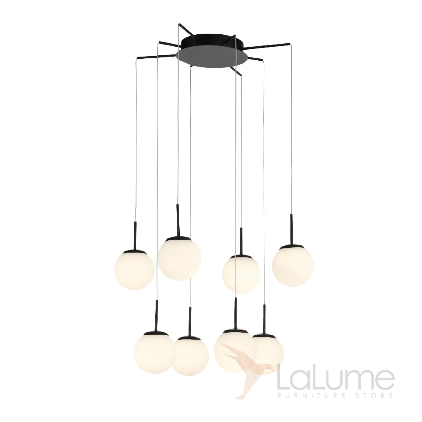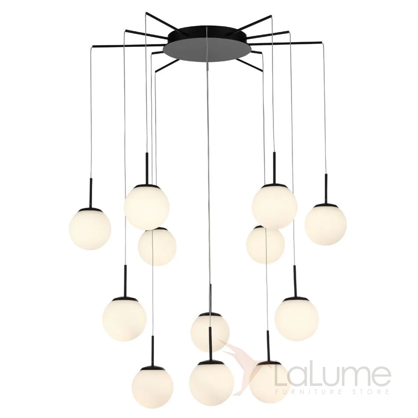 Многоуровневая люстра «паук» на 8 и 12 ламп с шарообразными плафонами из стекла CARO
