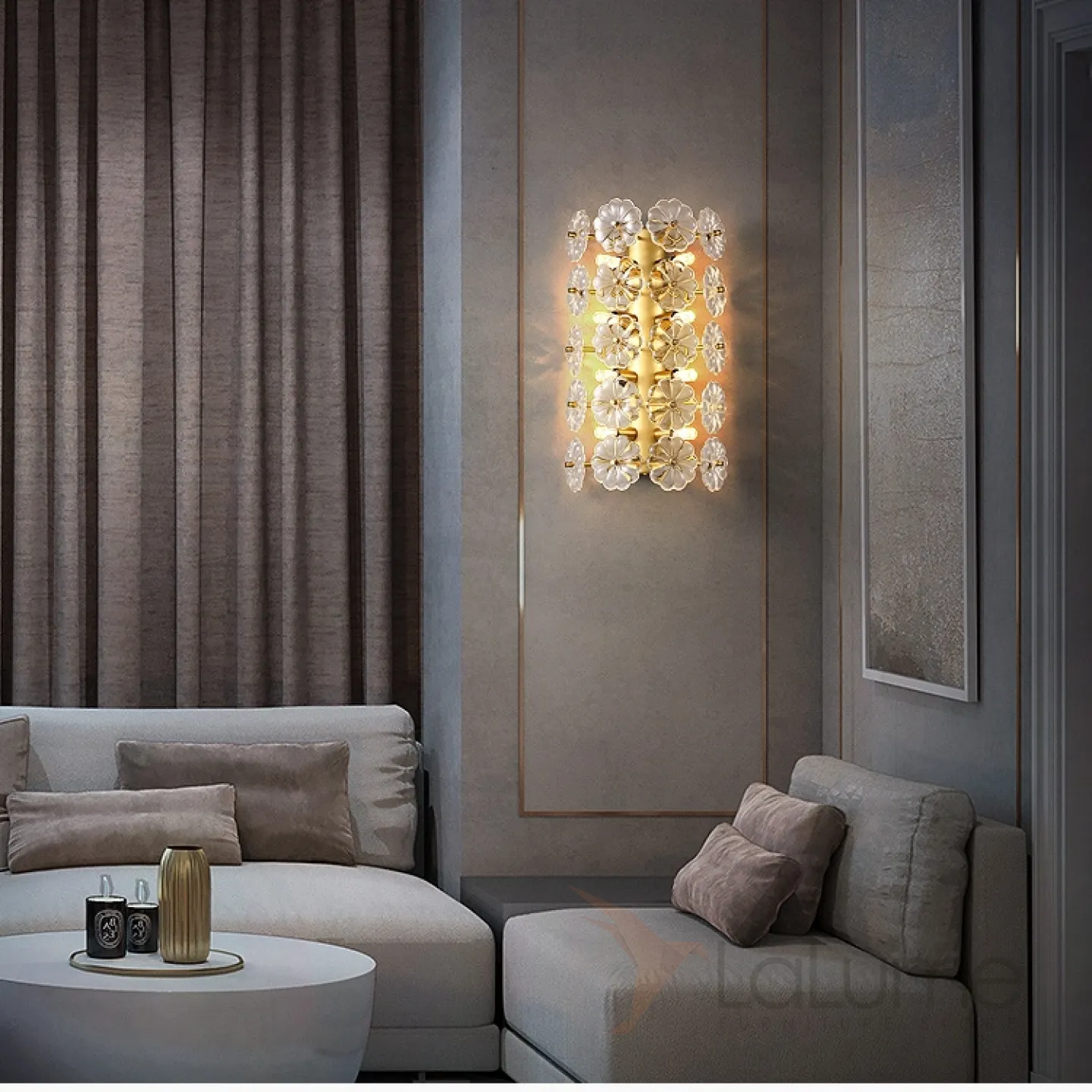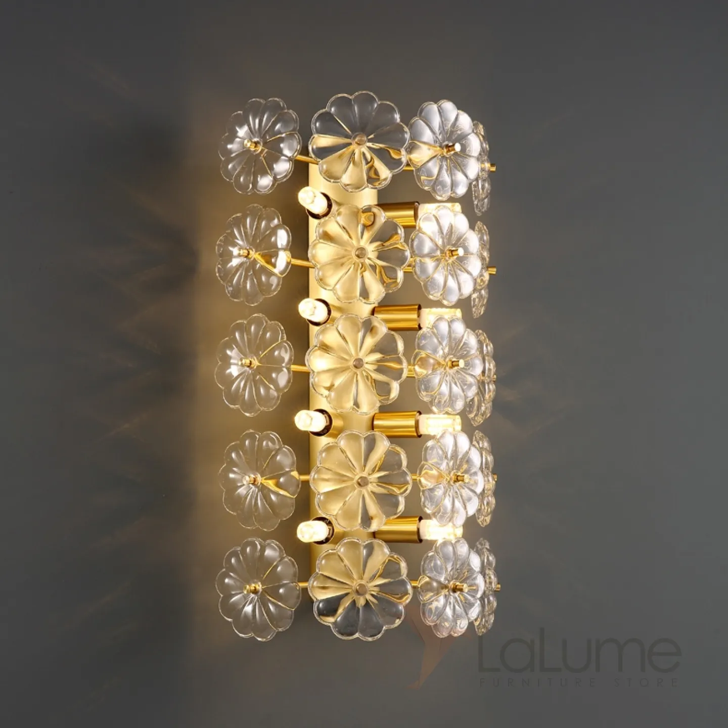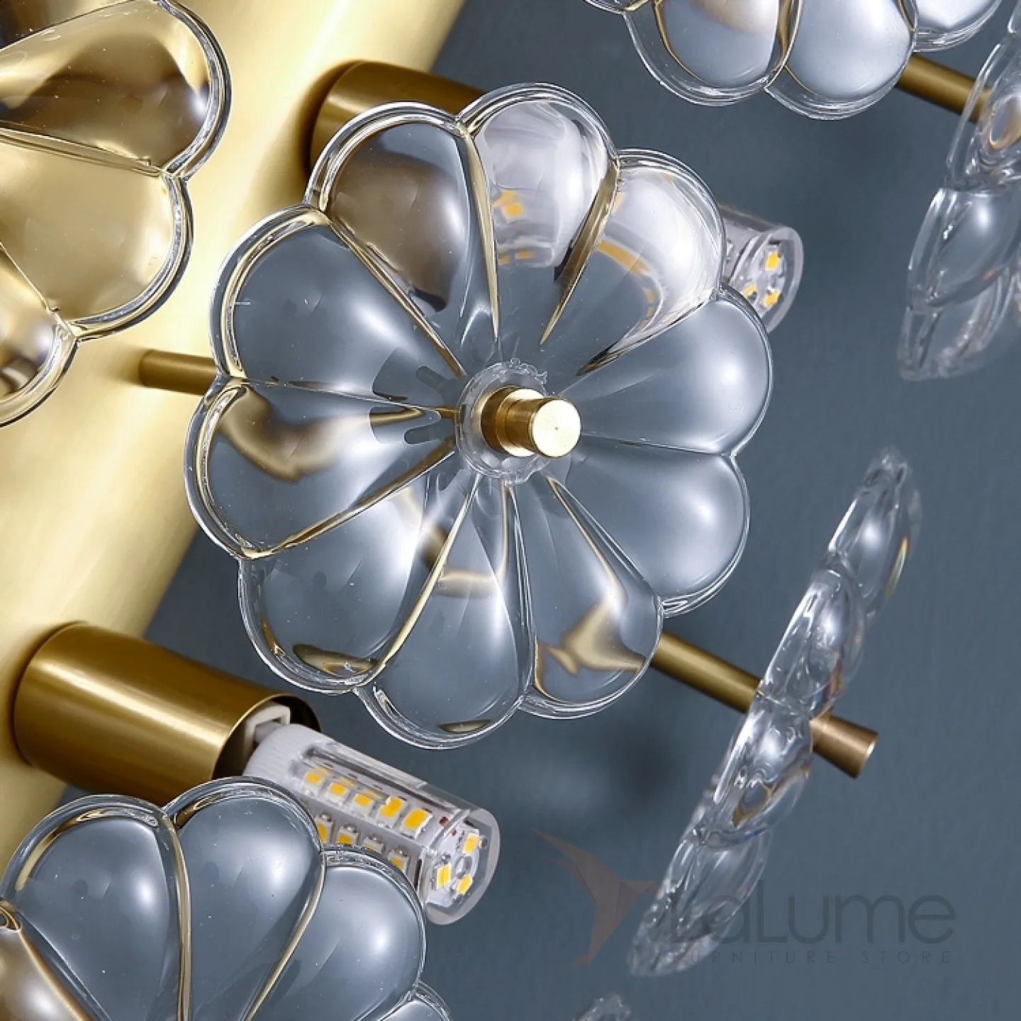 Дизайнерское бра со стеклянным полукруглым абажуром в форме цветов на металлическом каркасе MOIRA WALL