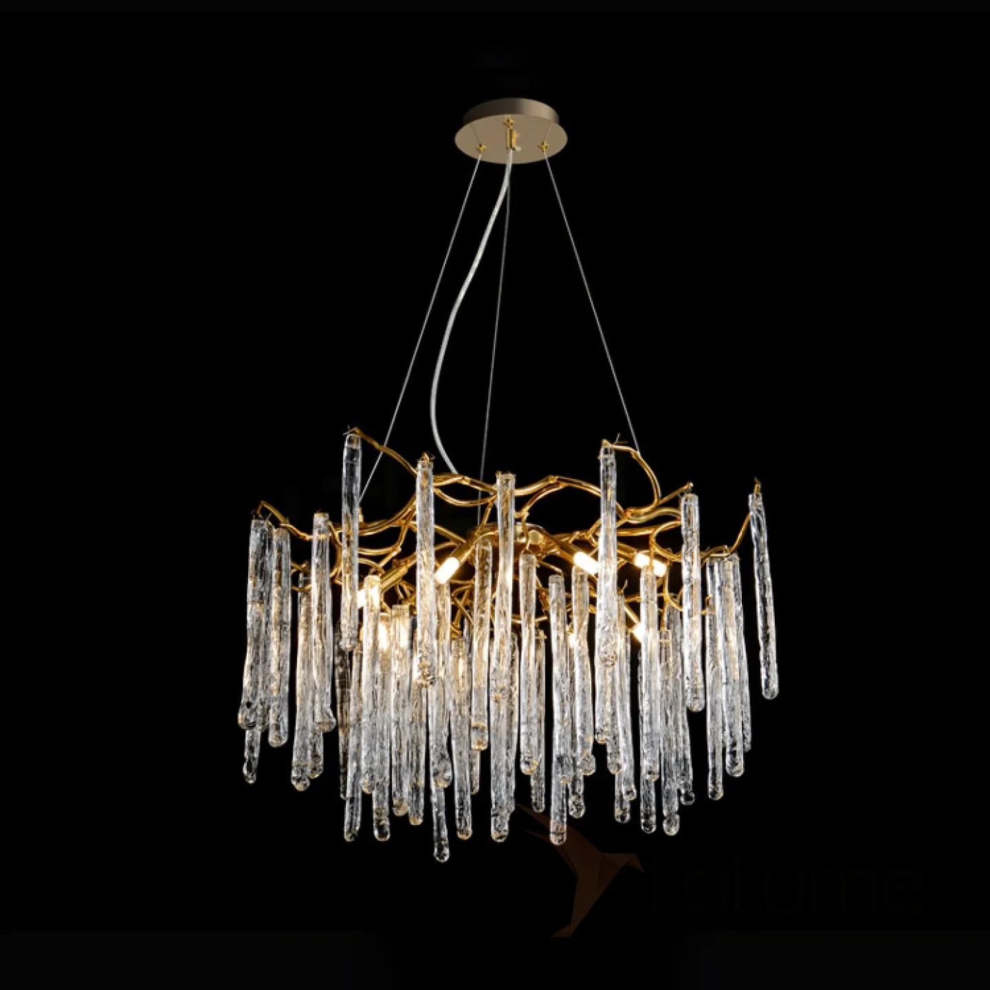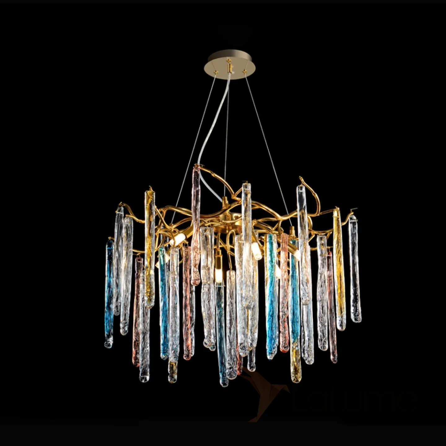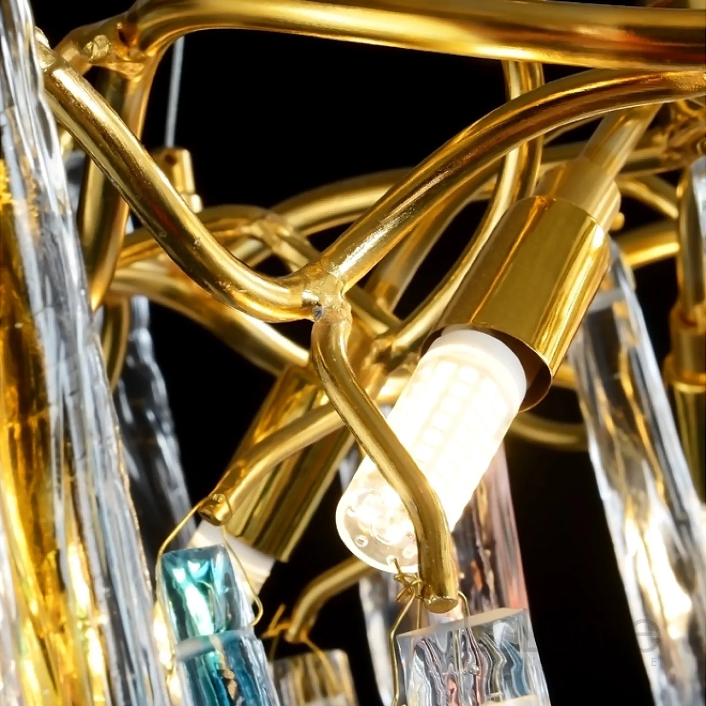 Люстра на подвесе с каркасом из металла и прозрачными или цветными подвесками из стекла MOSS
