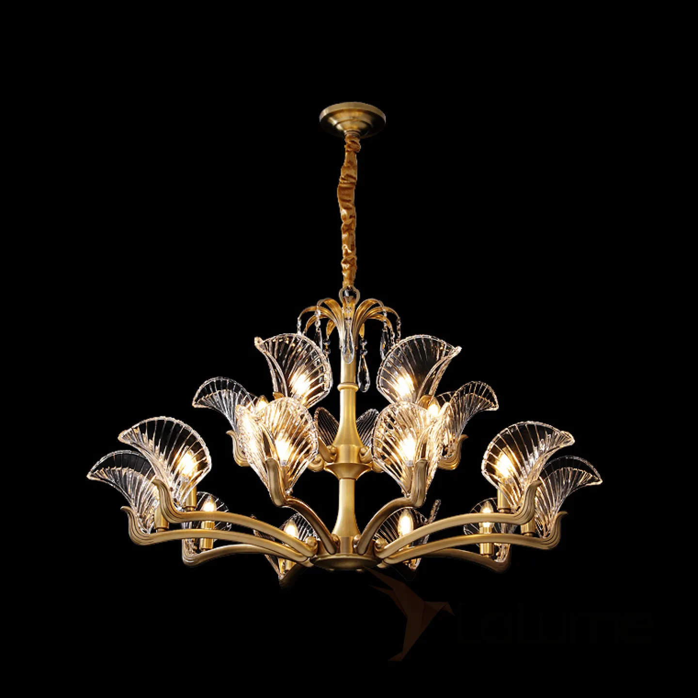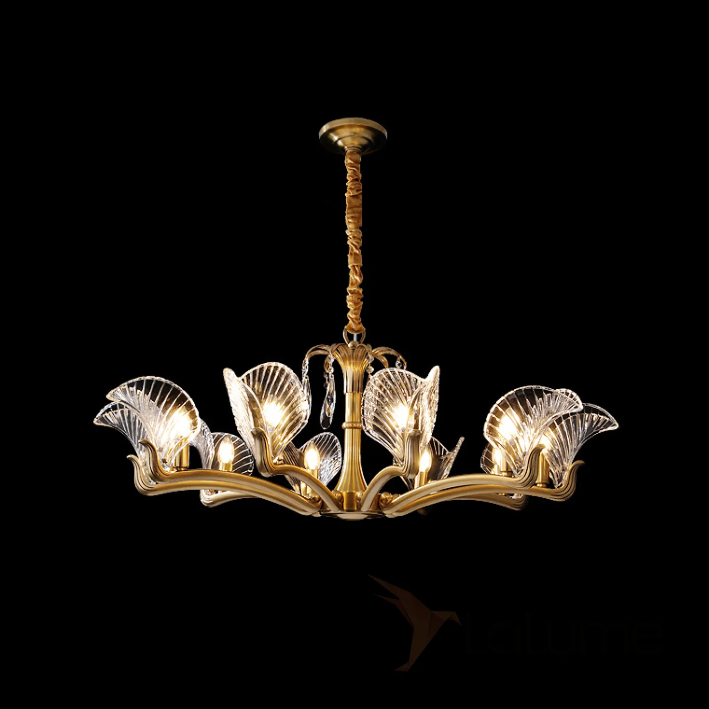 Серия подвесных люстр со стеклянными плафонами в форме листьев и гранеными подвесками 3MURANO