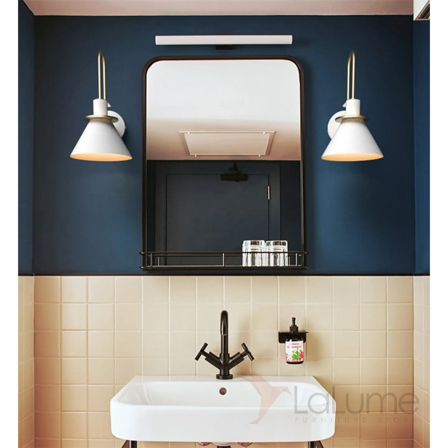 Новейшая модель бра в индустриальном стиле с металлическим коническим плафоном и косметическим элементом с латунным финишем.