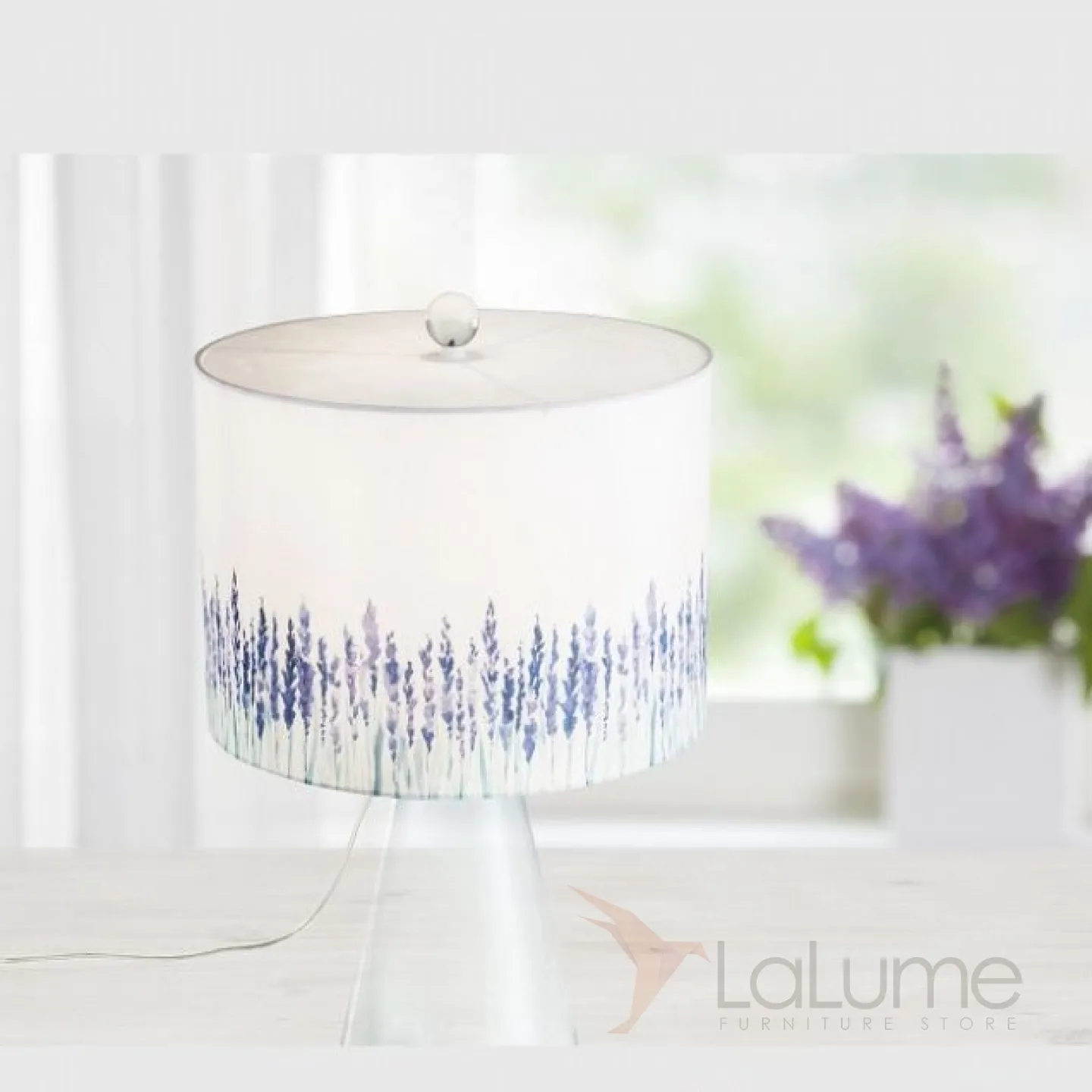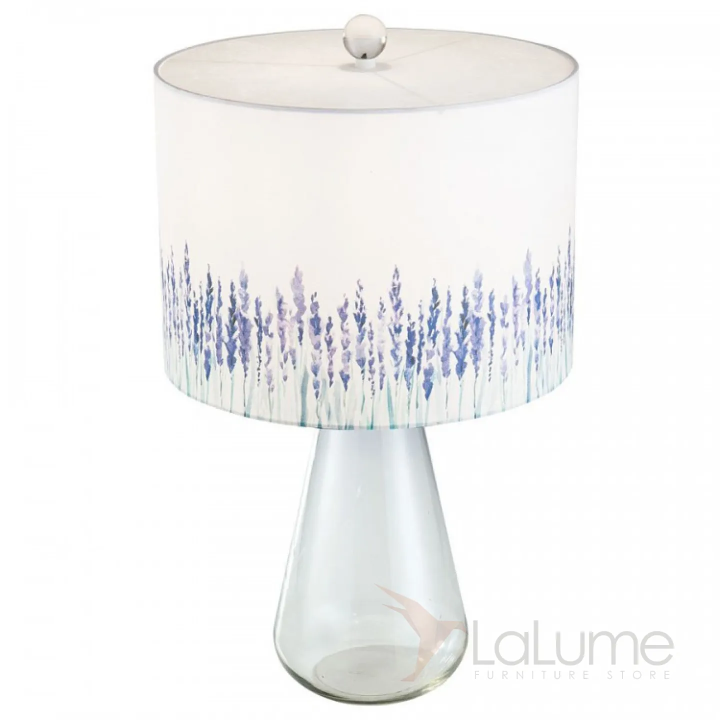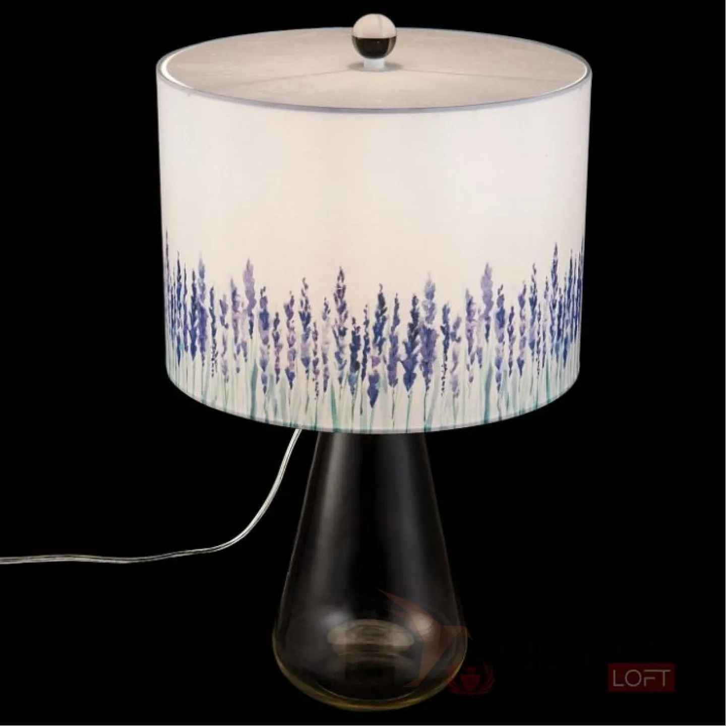 Настольная лампа с рисунком лаванды на текстильном абажуре и основанием-колбой LAVEN