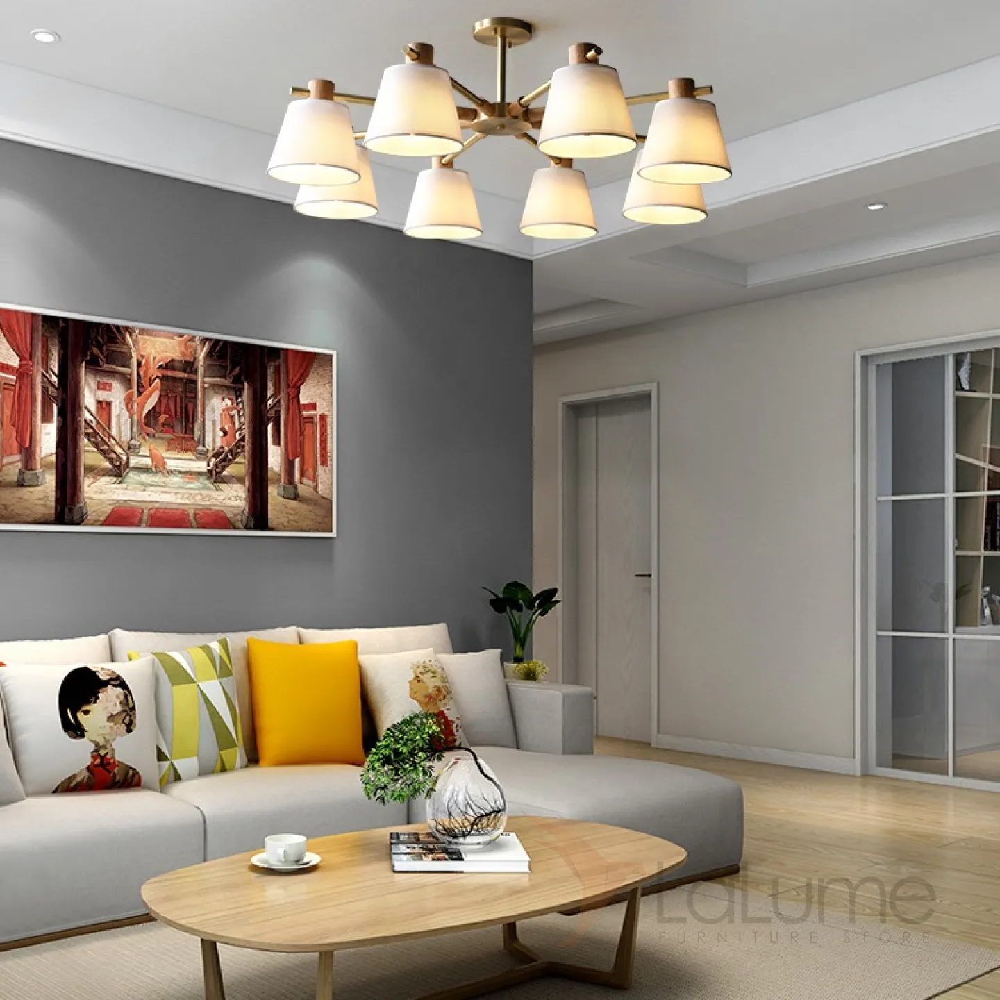 Люстра в скандинавском стиле с текстильными плафонами NATURA PRIMA
