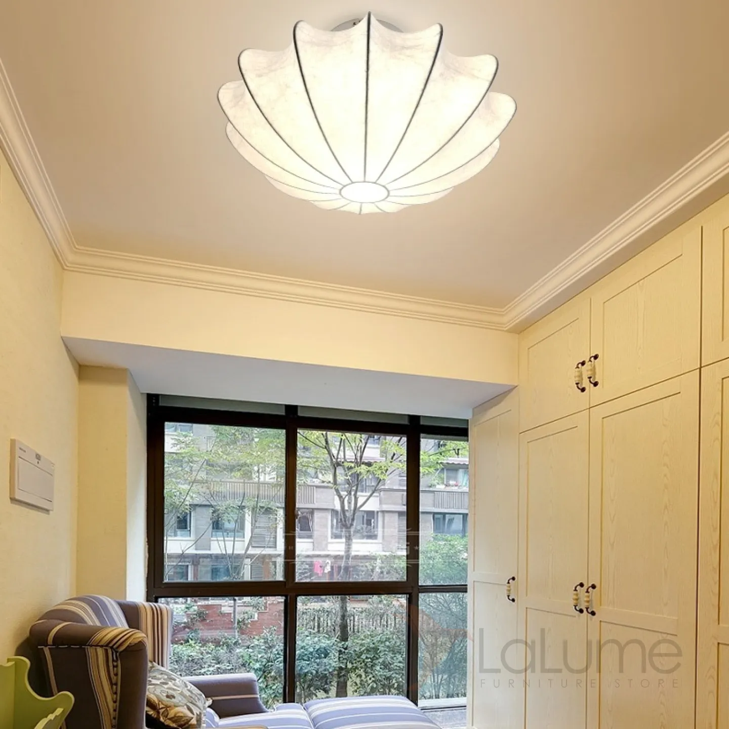 Потолочная люстра в виде обтянутого шелком лучевого каркаса NORNA