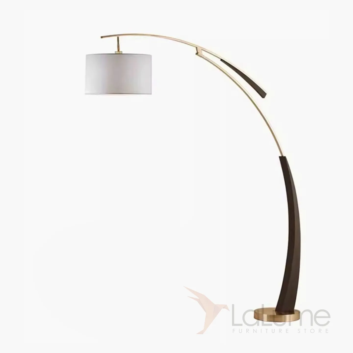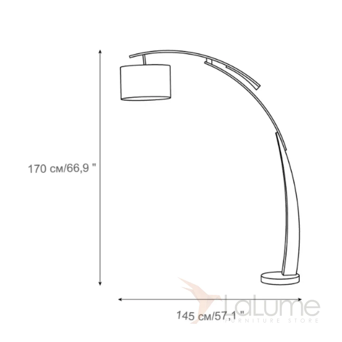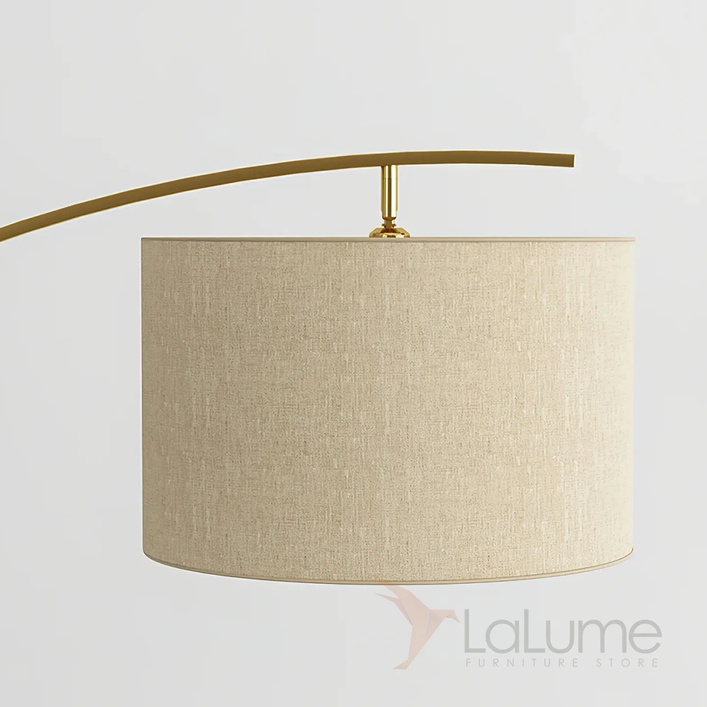 Элегантный напольный светильник с металлической дугообразной подставкой привлекает внимание своей изысканной конструкцией. Абажур из ткани добавляет устройству утончённость и эстетическую привлекательность, гармонично сочетая функциональность и визуальную красоту.