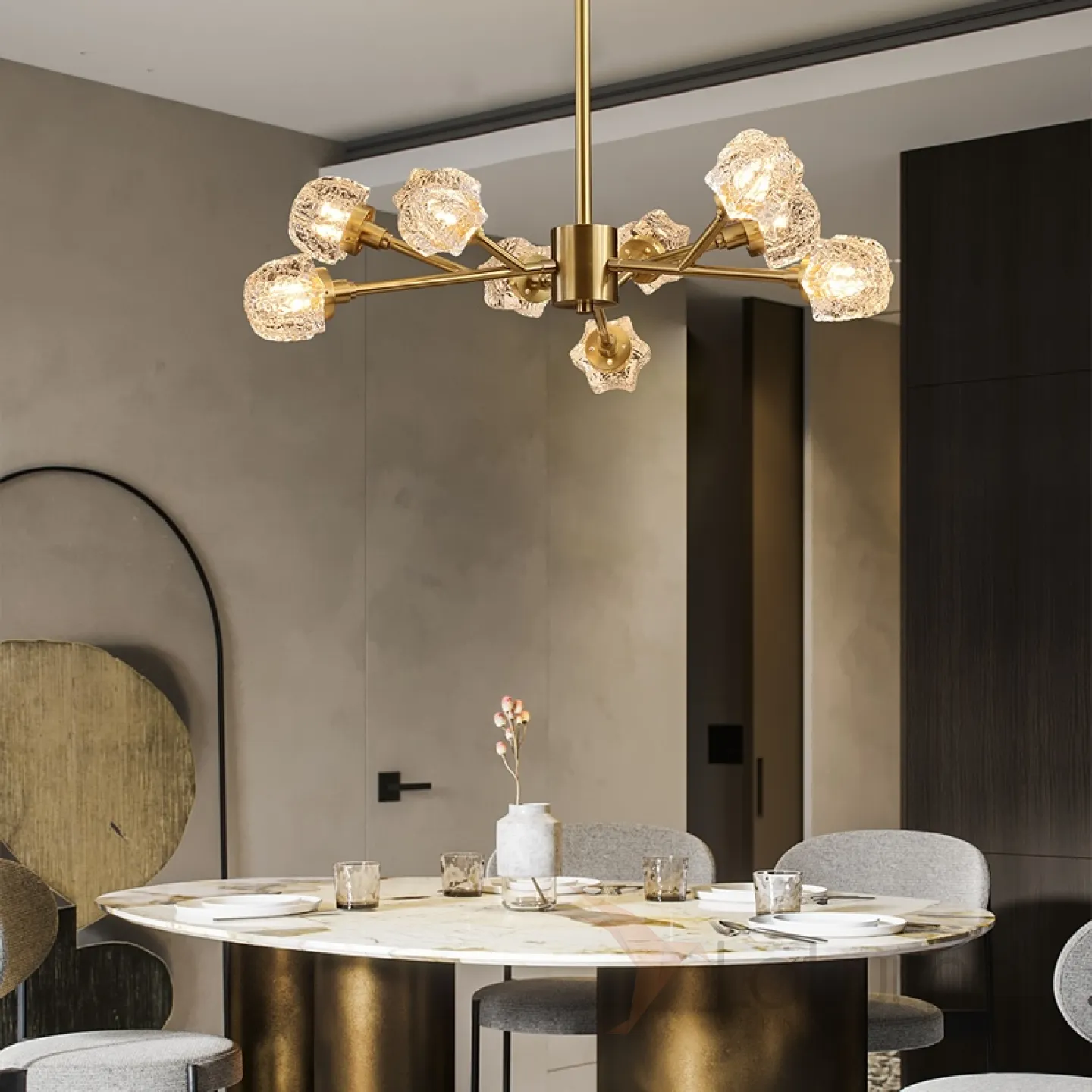 Линейка люстр на металлическом каркасе с плафонами из рельефного стекла ORION