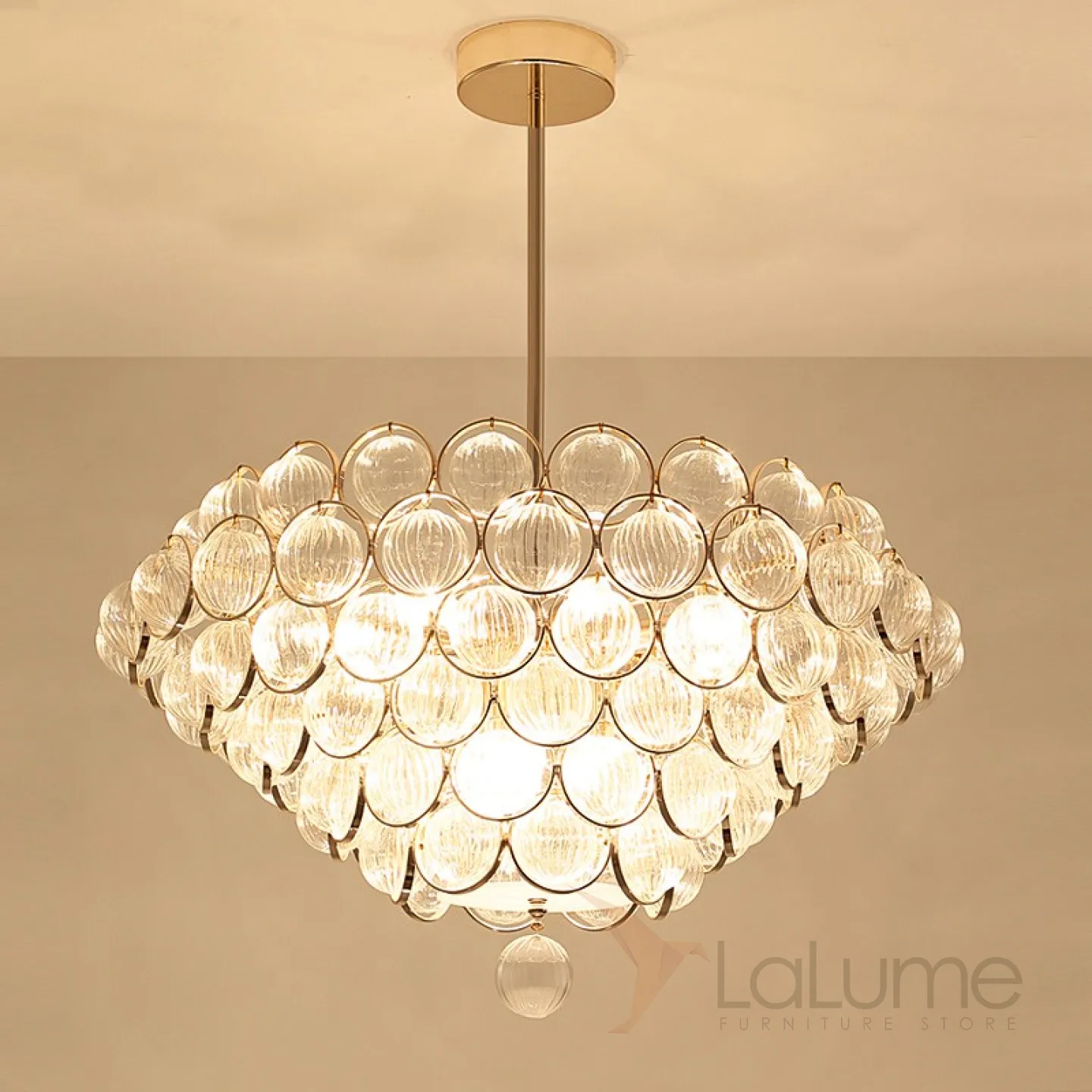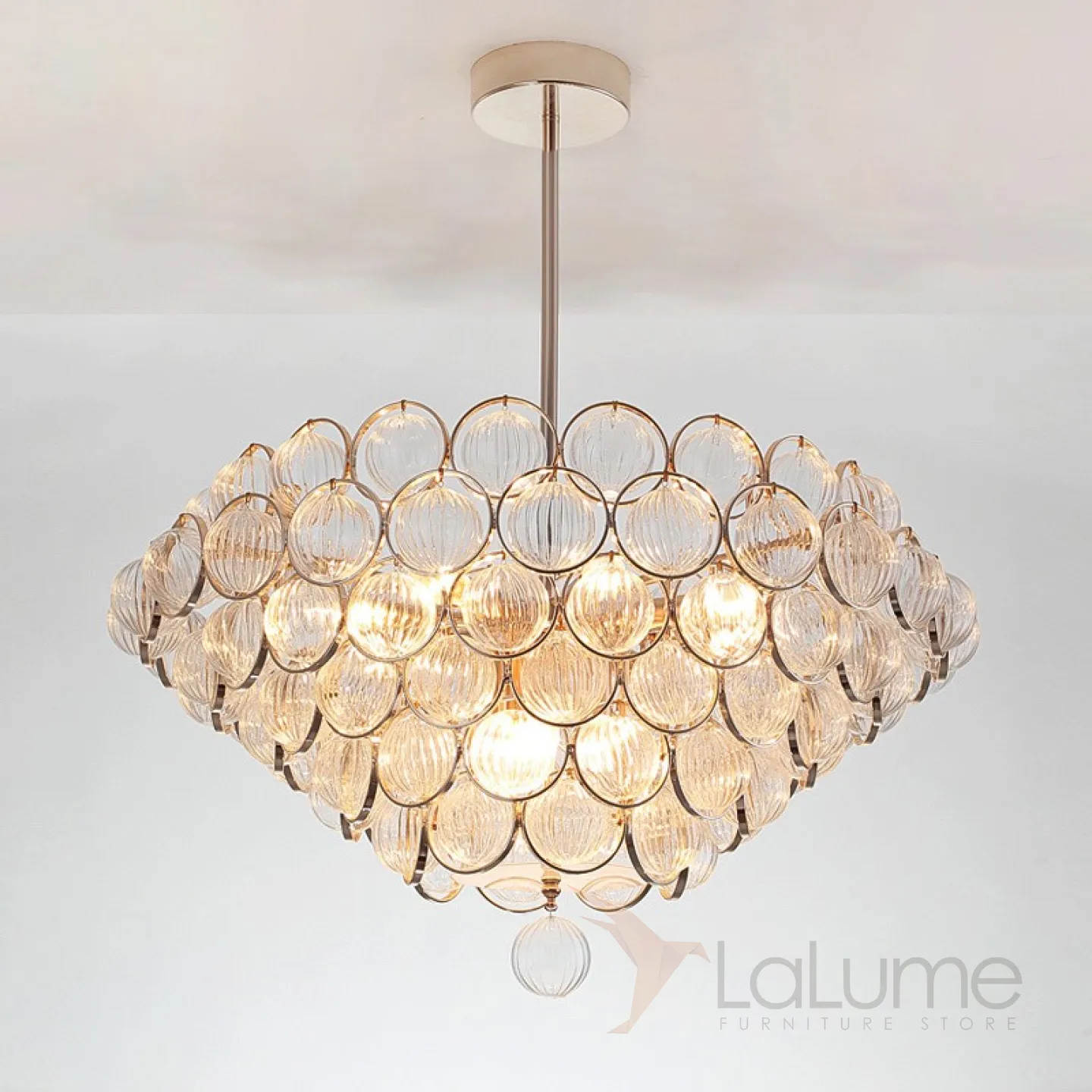 Люстра PARLOR 11 в стиле постмодерн с абажуром из стеклянных рельефных шариков. Выпускается на стойке и в виде потолочных версий.
