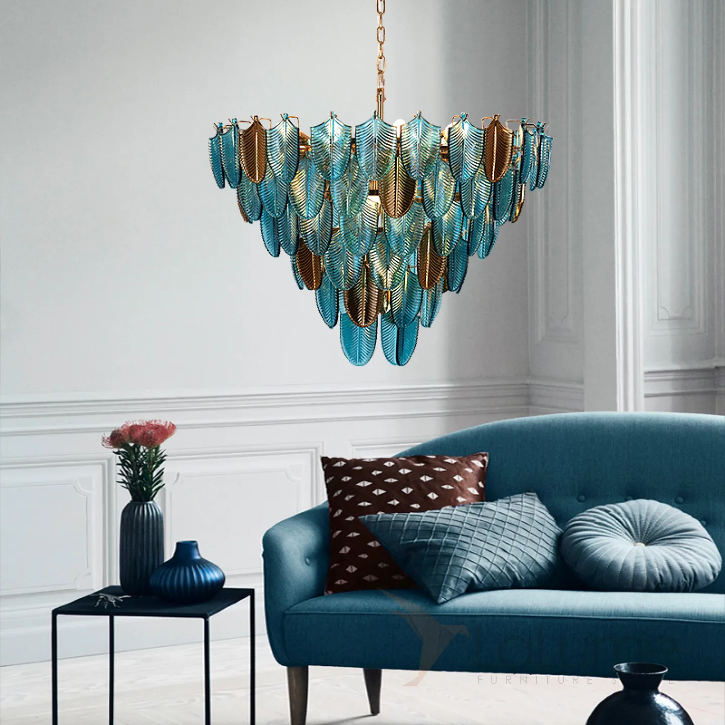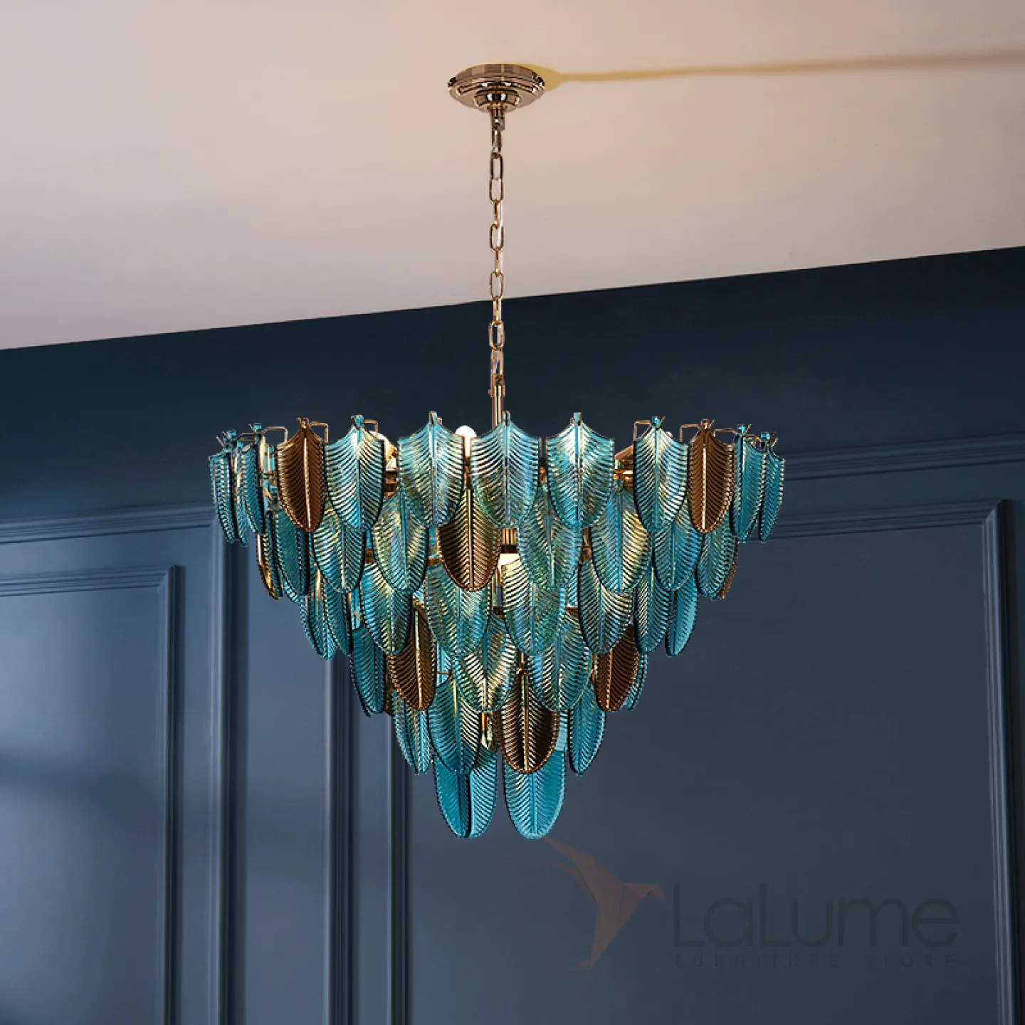 Подвесная люстра с декором в виде перьев из цветного стекла, расположенным с несколько ярусов LAIMA B
