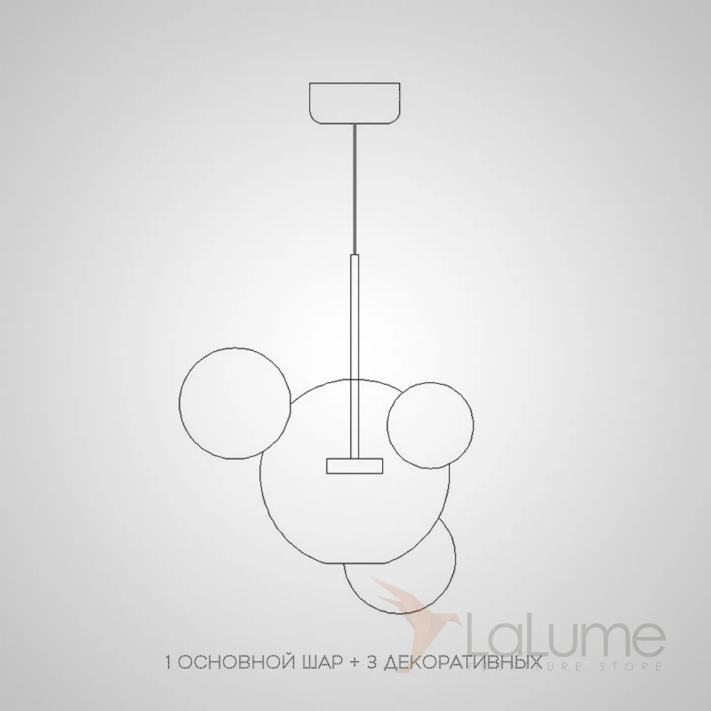 Каждый светильник может быть выполнен в виде единого основного шара или же с несколькими шариками меньших диаметров, прикрепленных к основному шару-абажуру.