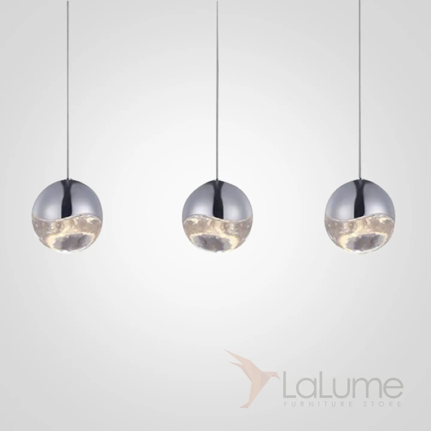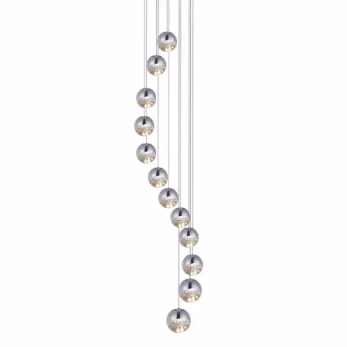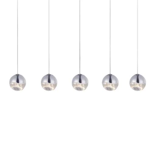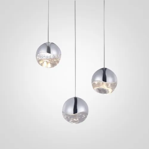 Подвесной светильник с 3-мя плафонами из металла и прозрачного стекла. Цвет металла: сатинированный никель.