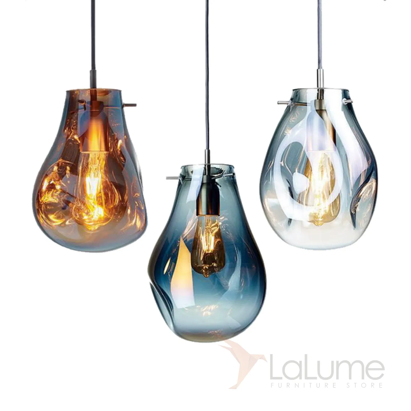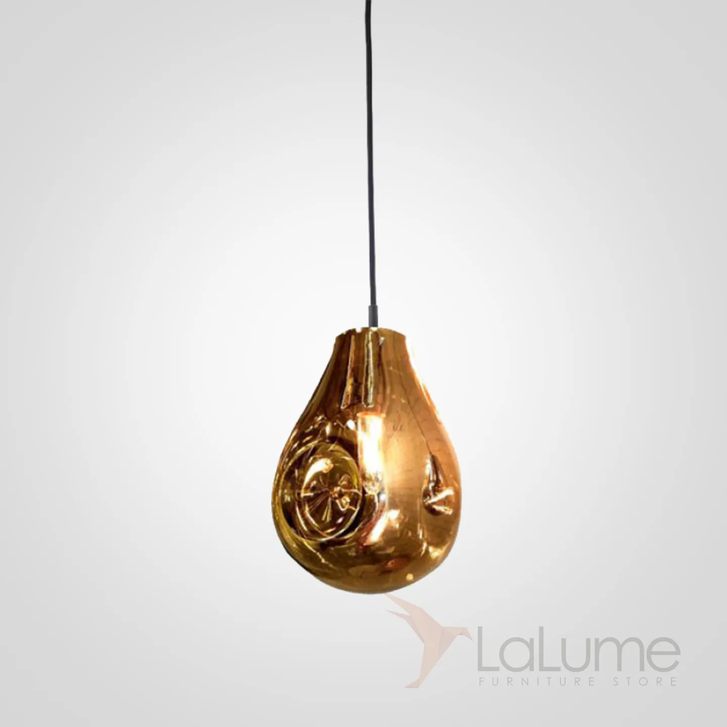 Подвесной светильник с плафоном из стекла золотого цвета.