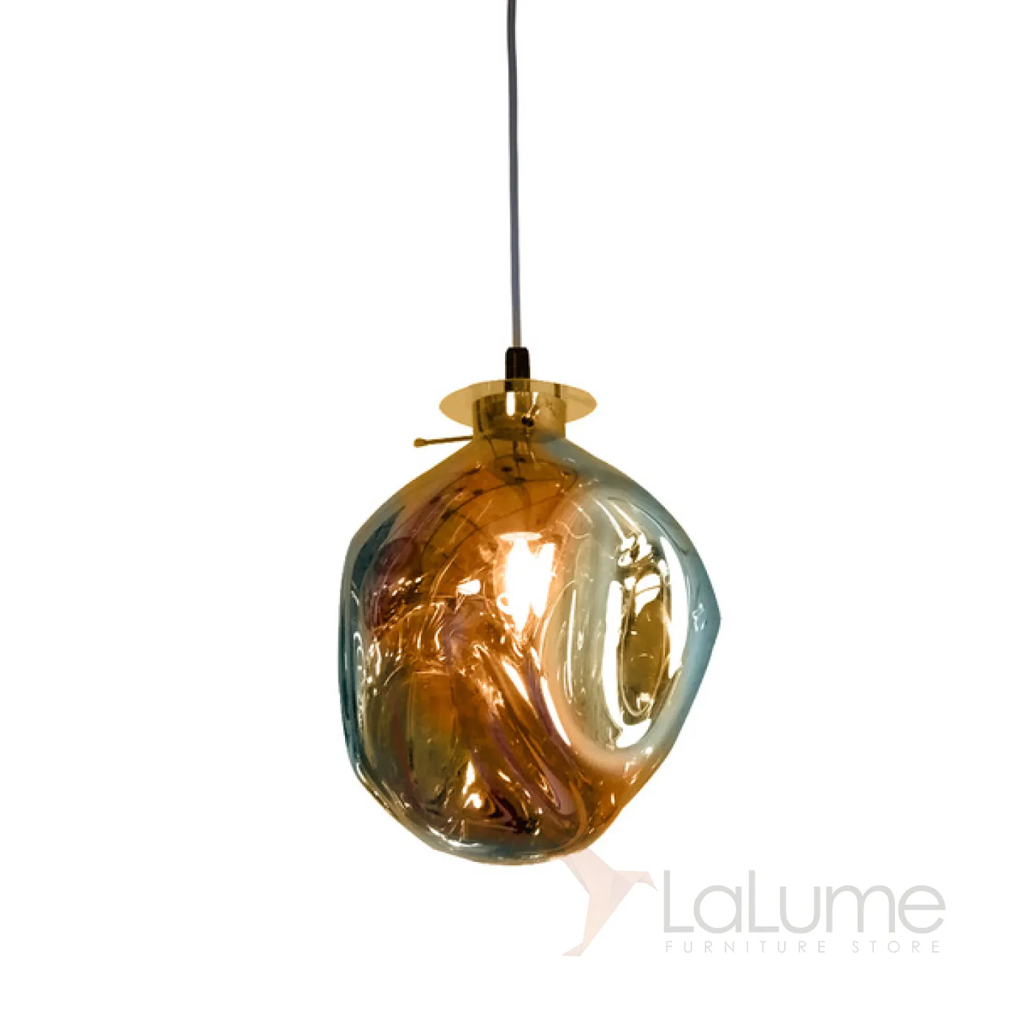 Подвесной светильник с плафоном из стекла янтарного цвета.