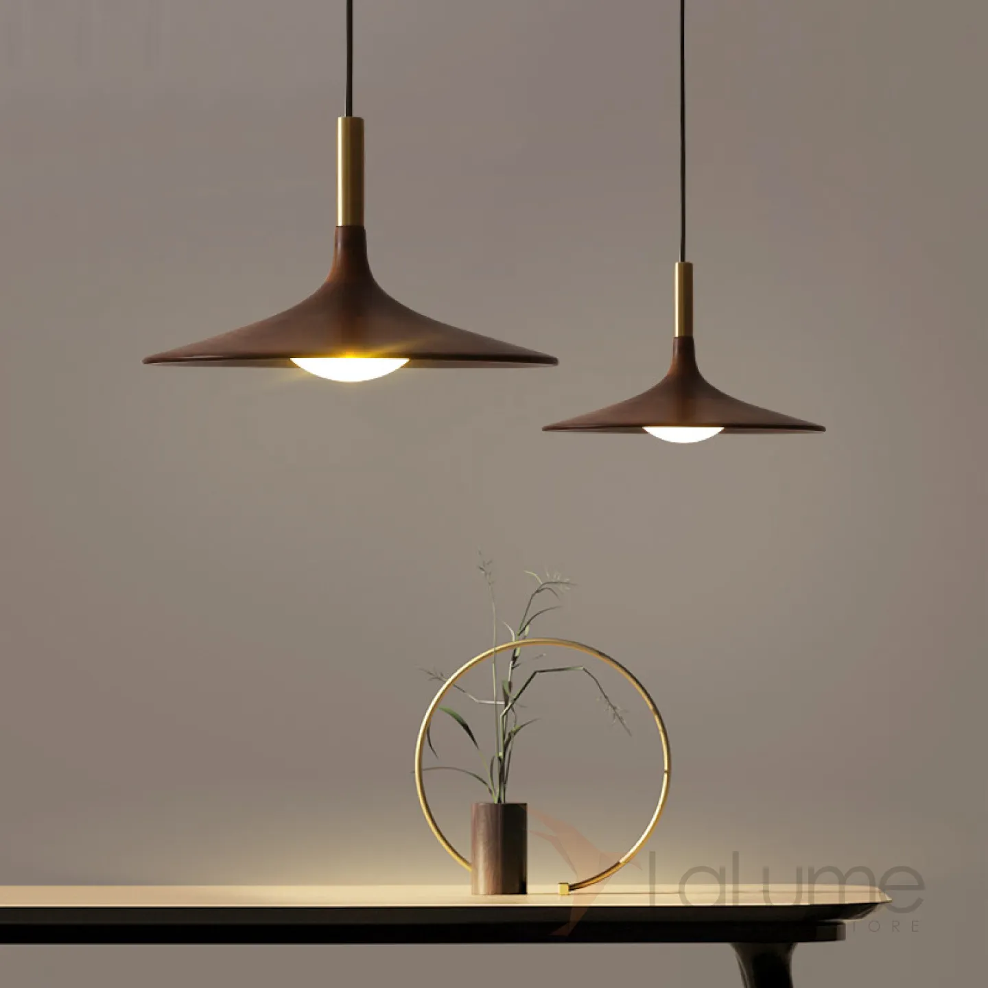 Подвесной светильник с деревянным абажуром гироскопической формы JIL