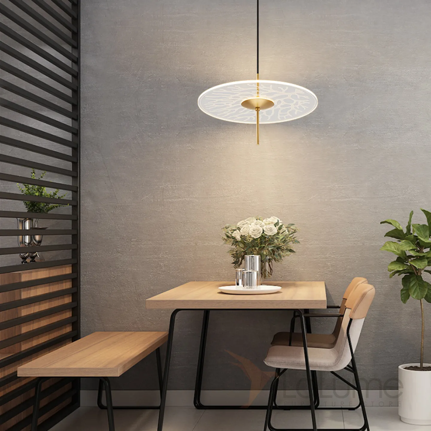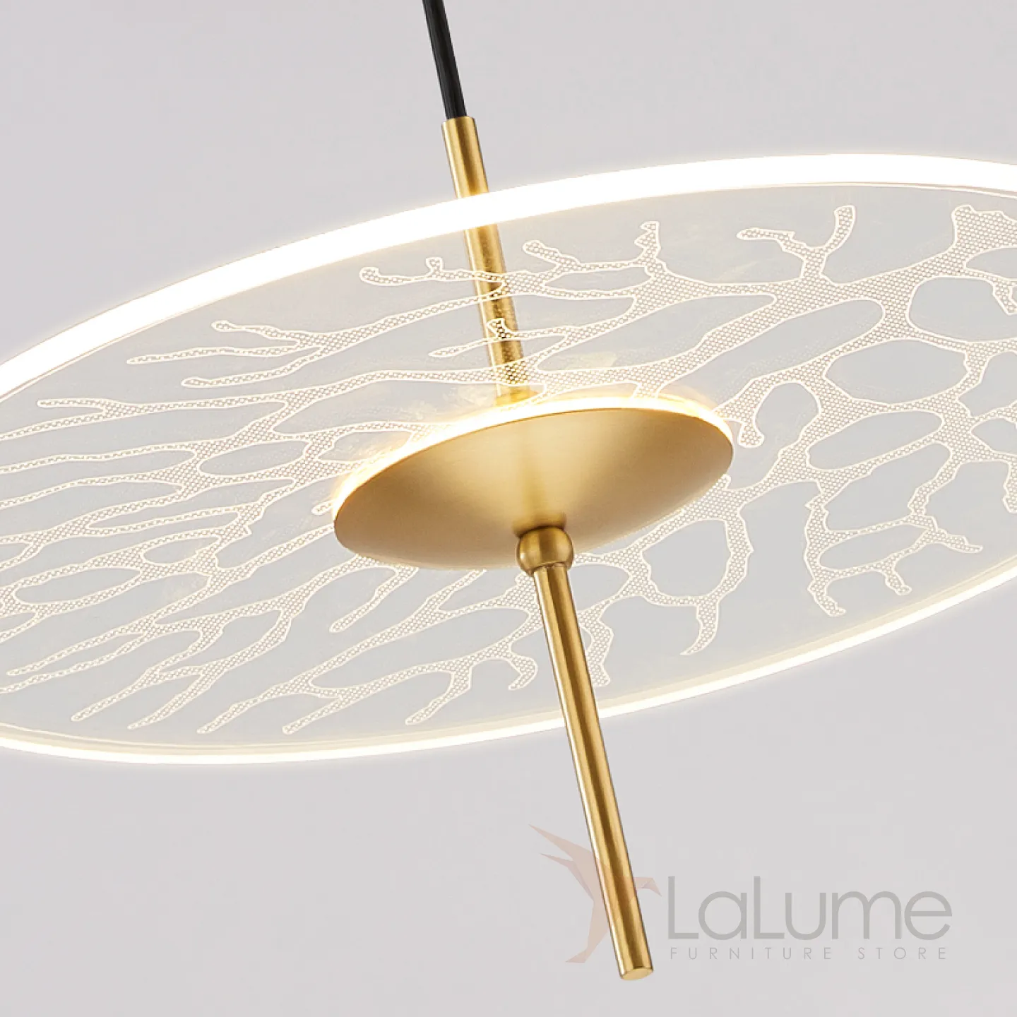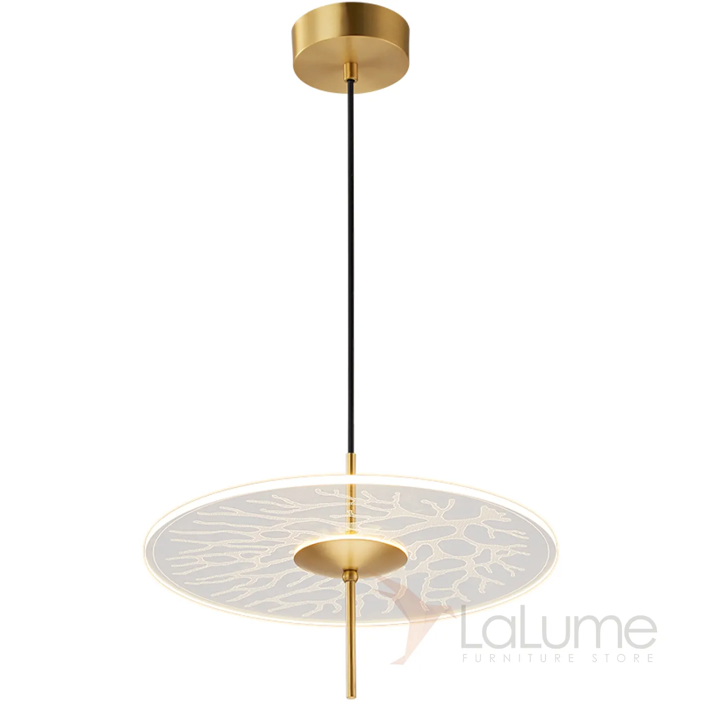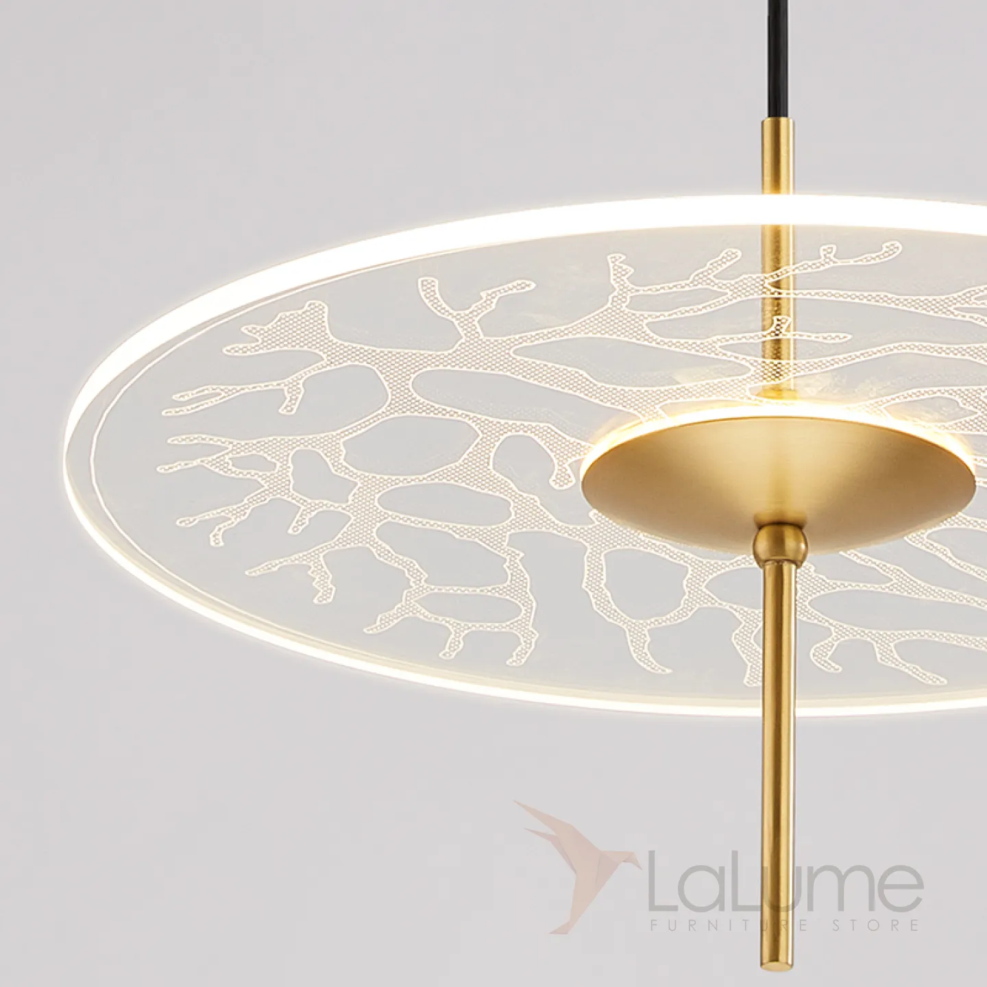 Подвесной светильник в виде прозрачного диска с точечным узором на вертикальной штанге и led подсветкой NESSA B