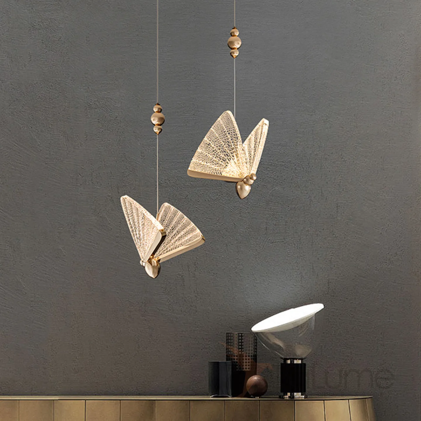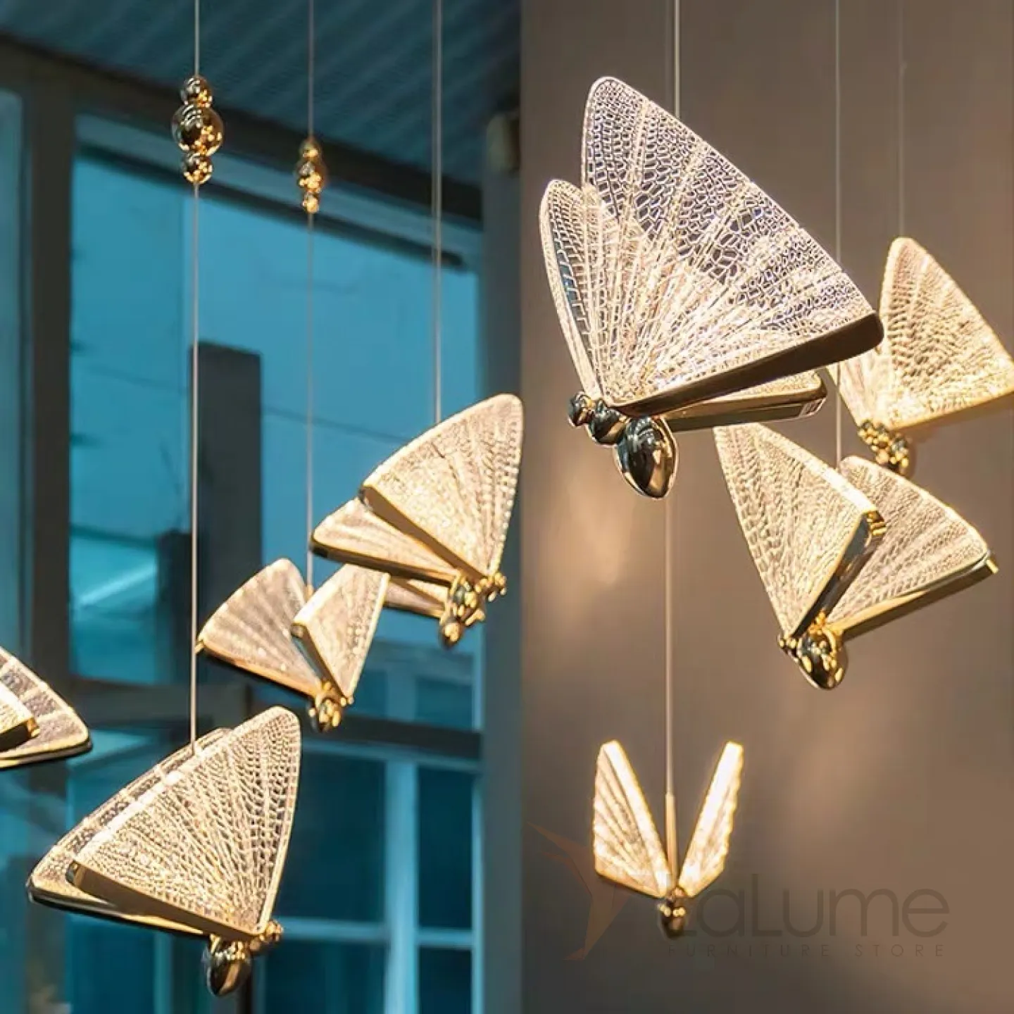 Подвесной светодиодный светильник в виде золотых бабочек с ажурными крыльями AMELIS