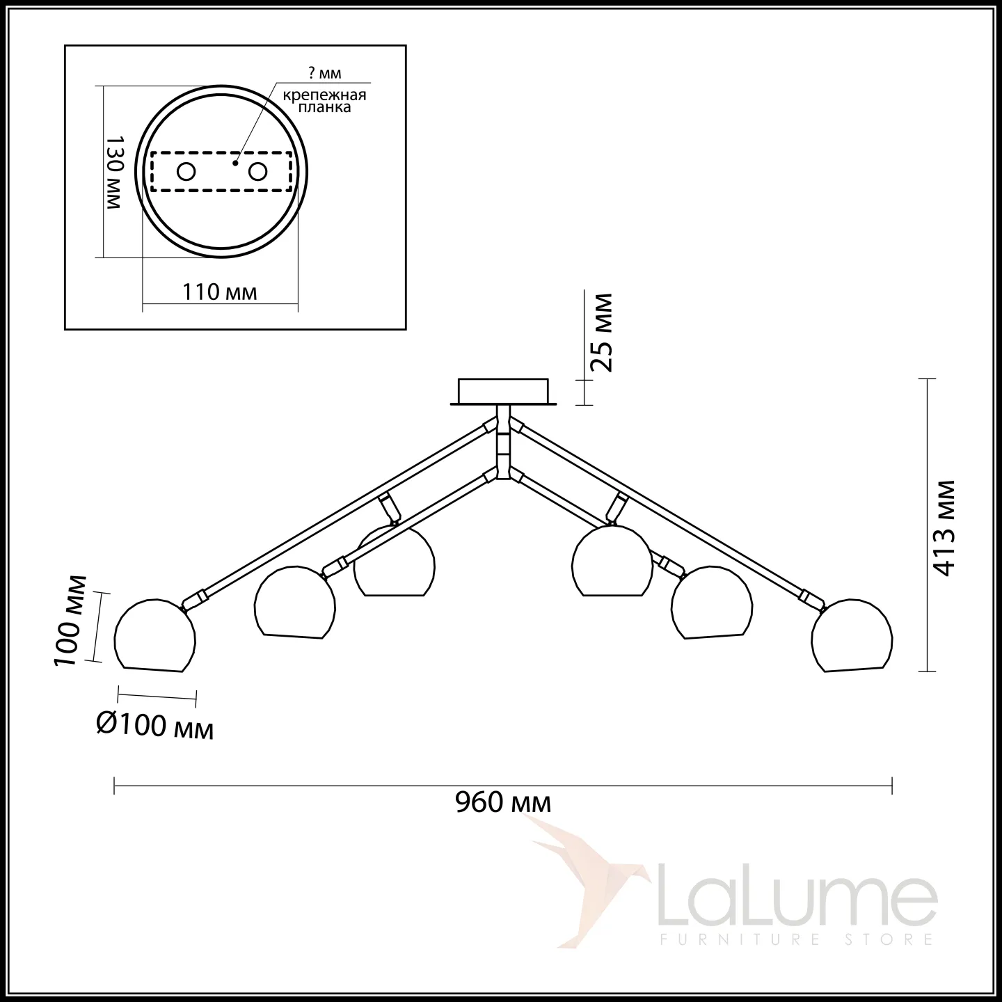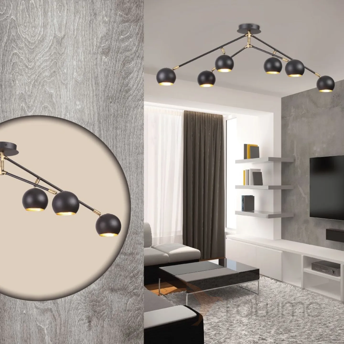 Потолочная люстра с плафонами черного цвета с золотой внутренней поверхностью VOLL C