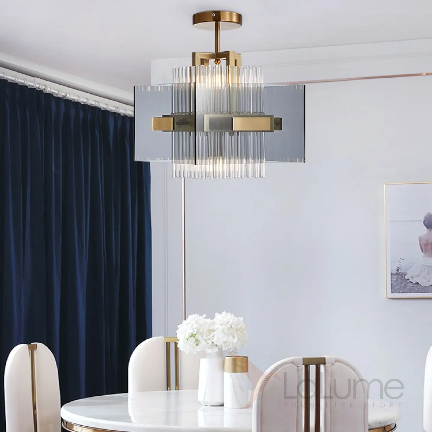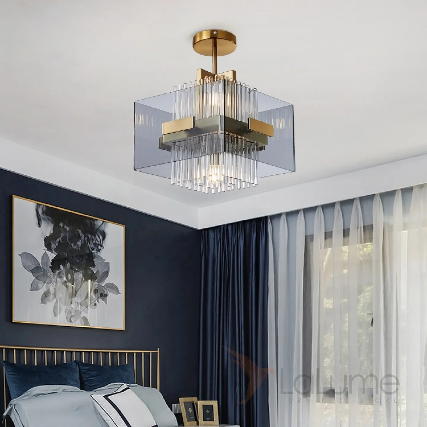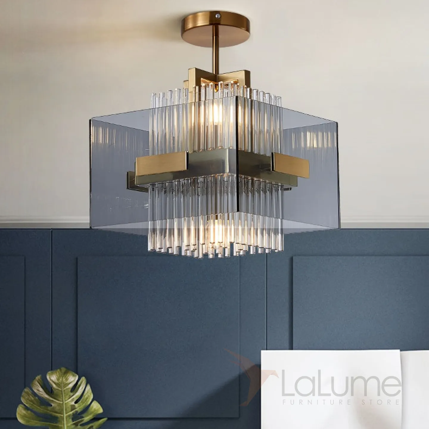 Потолочная люстра с плафоном из тонких стеклянных трубочек внутри квадратного каркаса из стекла SELLA CH