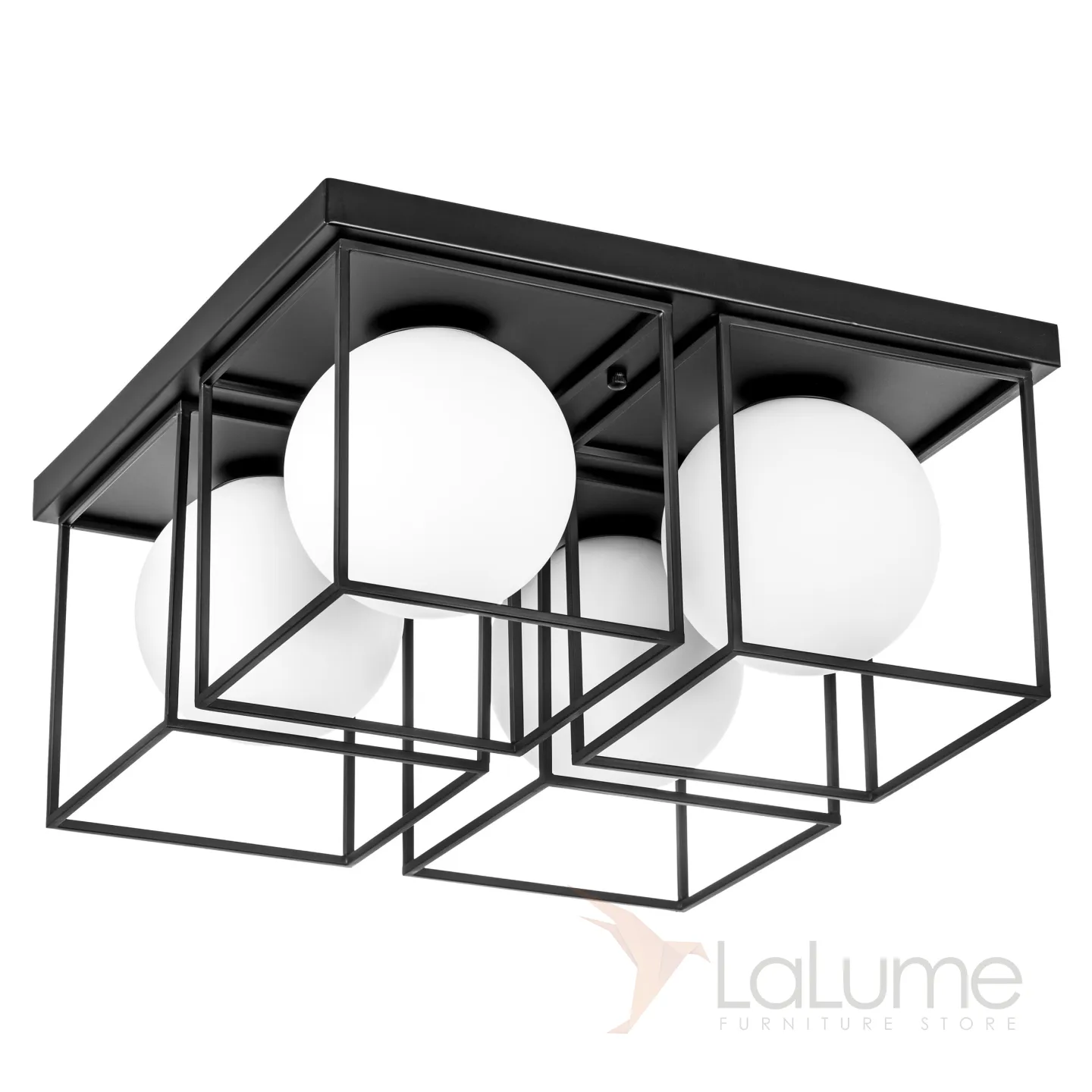 Потолочная люстра с шарообразными стеклянными плафонами в контурном кубическом каркасе ELINA