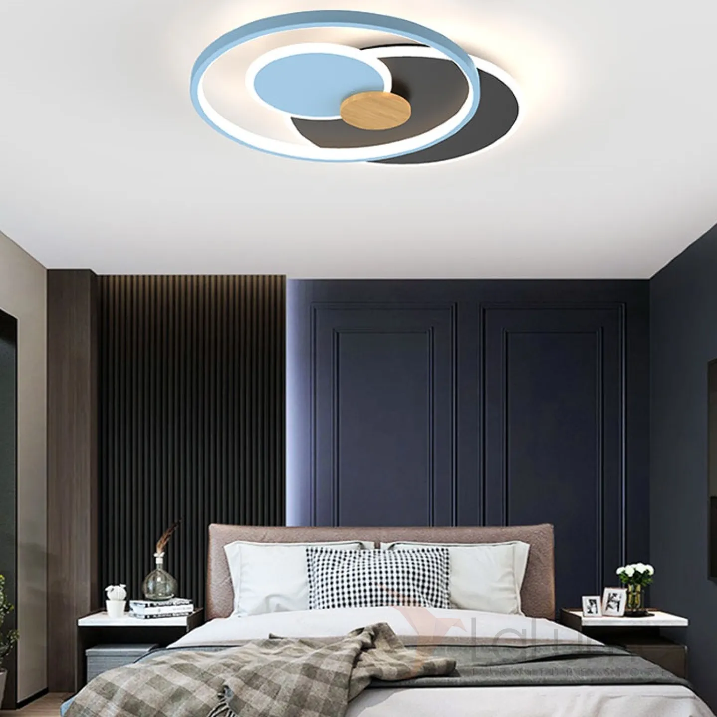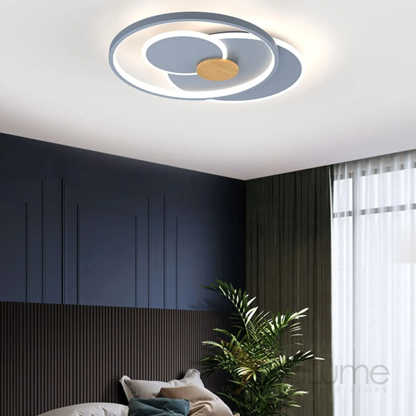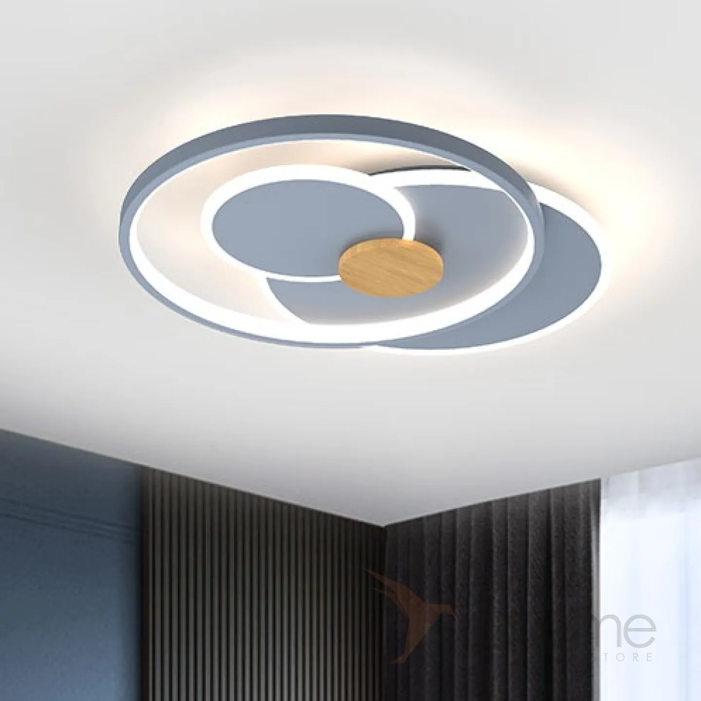 Потолочный светильник в виде композиции из светодиодных колец из дерева и металла ABIGAIL B