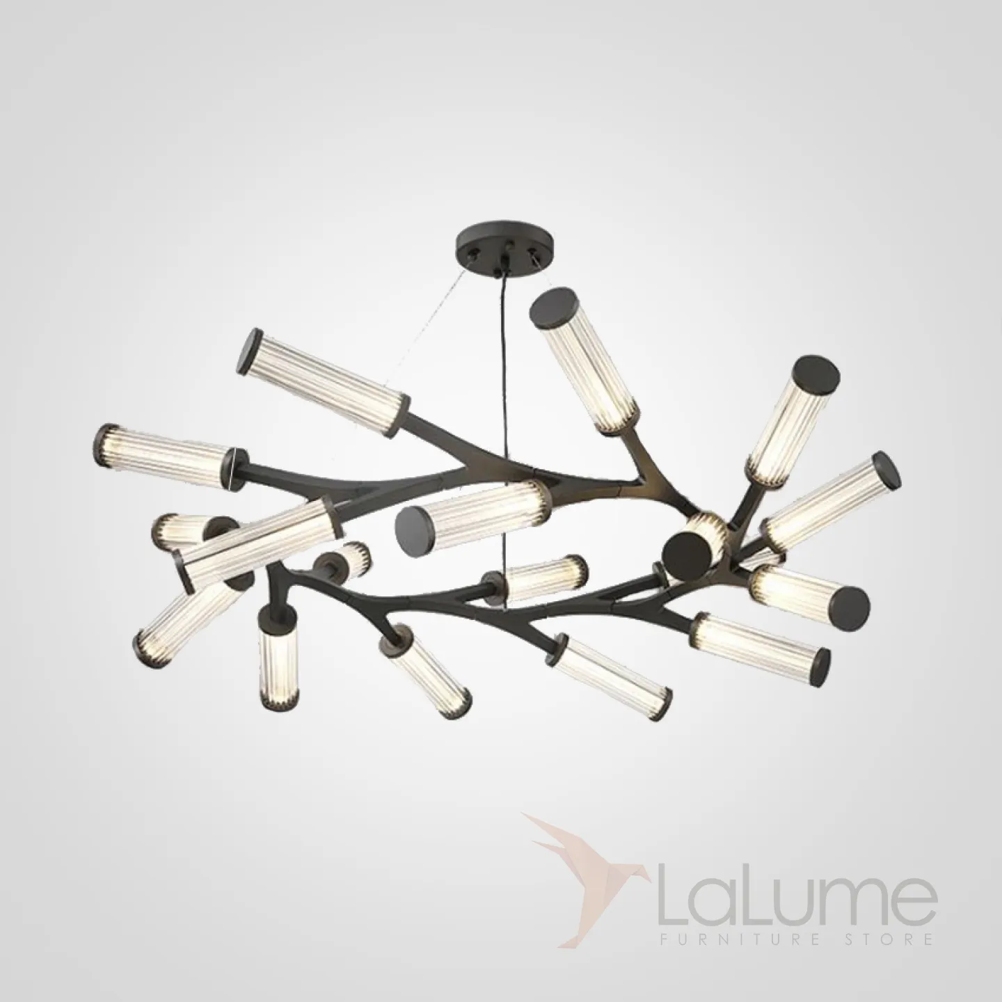 Кольцевая люстра на струнном подвесе с древовидным расположением поворотных плафонов RAMOSE RING 18 Черный