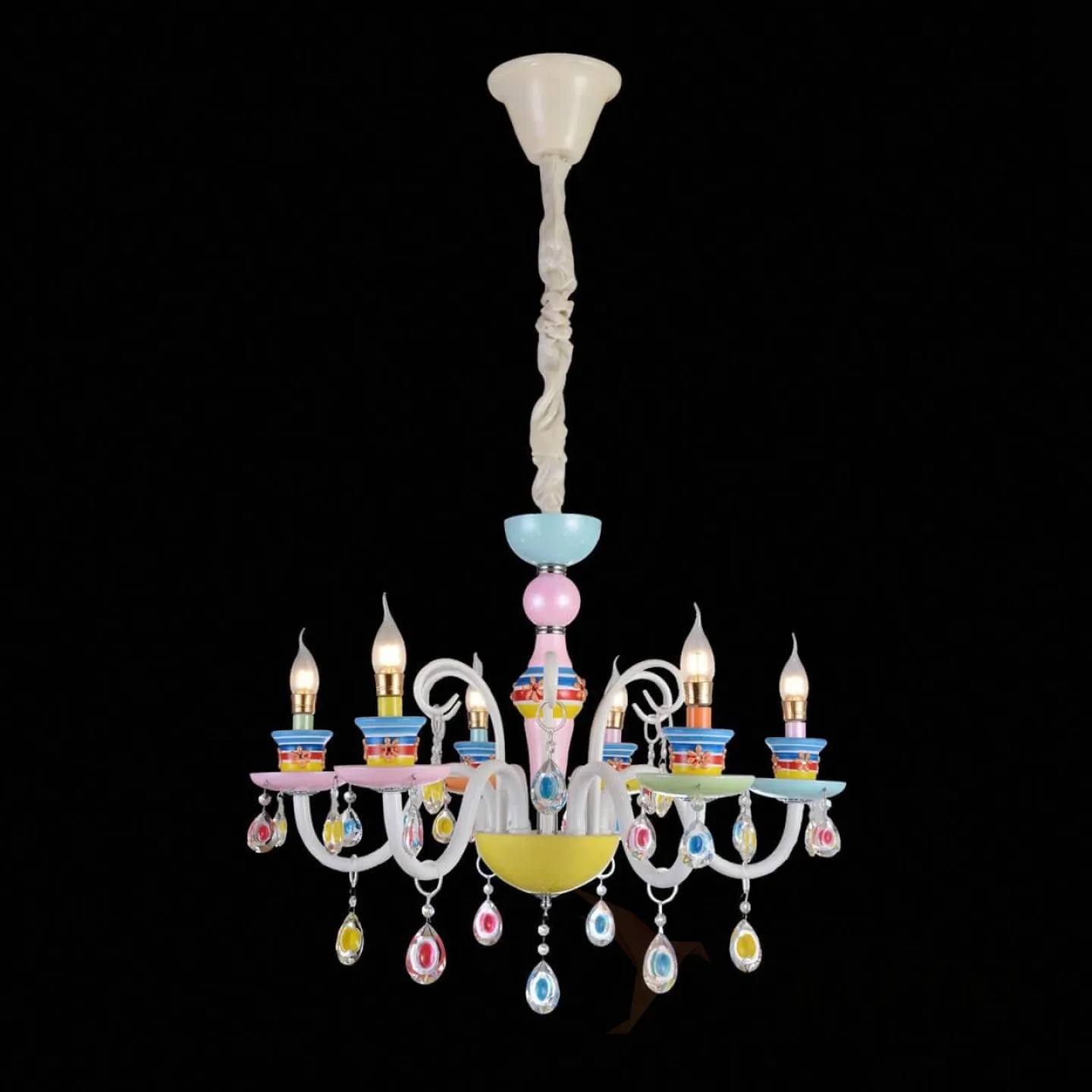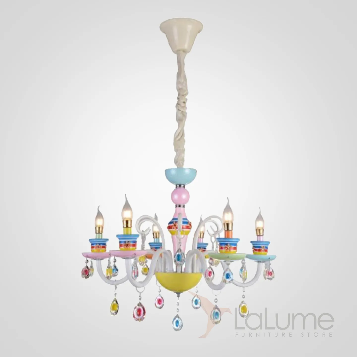 Разноцветная люстра для детской с полосатыми плафонами и подвесками в виде кристаллов TEATIME 6