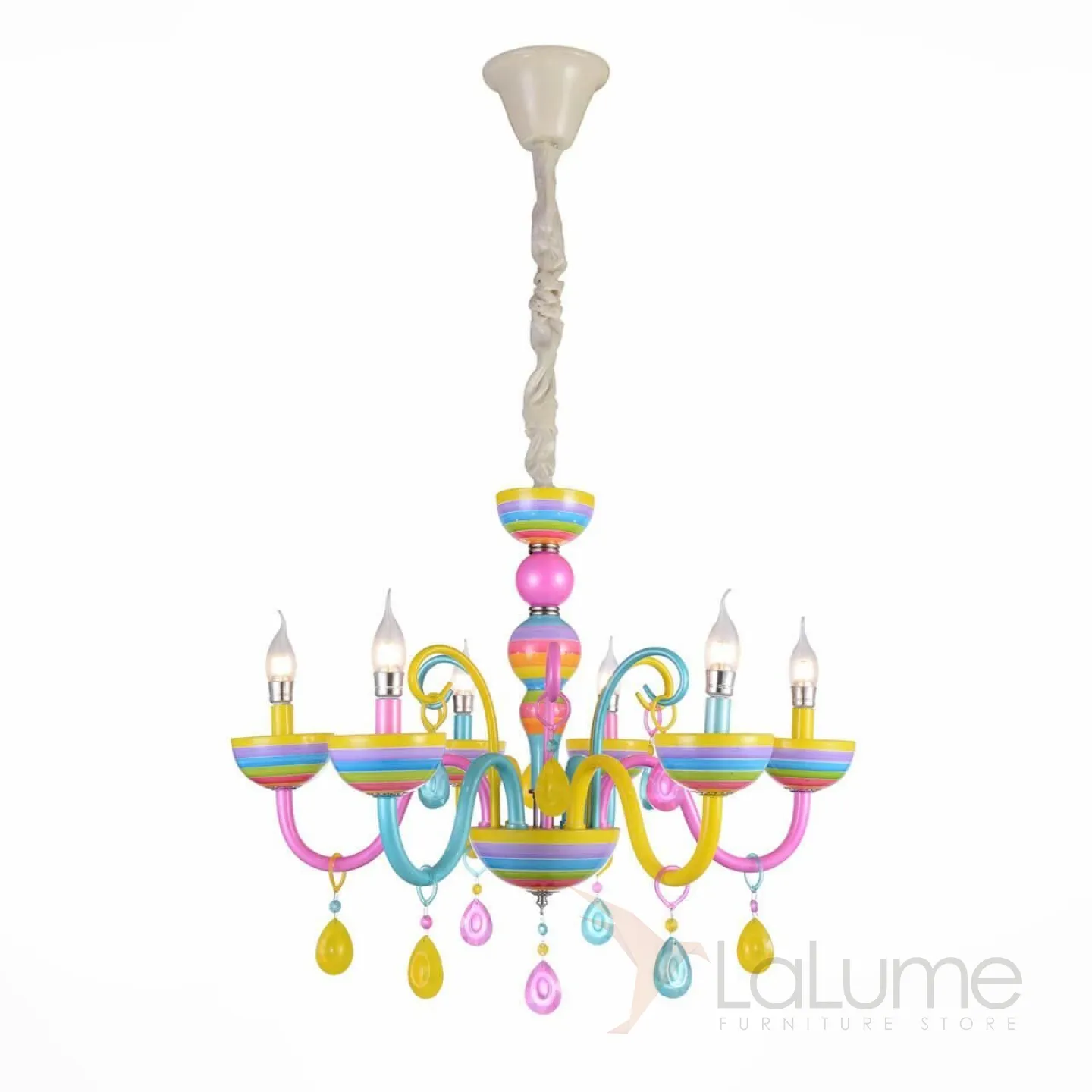Разноцветная люстра для детской с полосатыми плафонами на выгнутых рожках RAINBOW 5