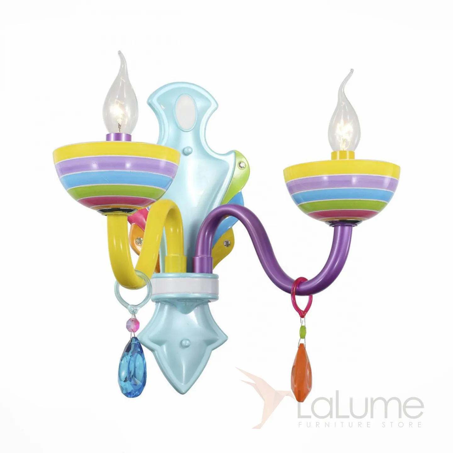 Разноцветный настенный светильник для детской с полосатыми плафонами и подвесками в виде кристаллов RAINBOW WALL 5