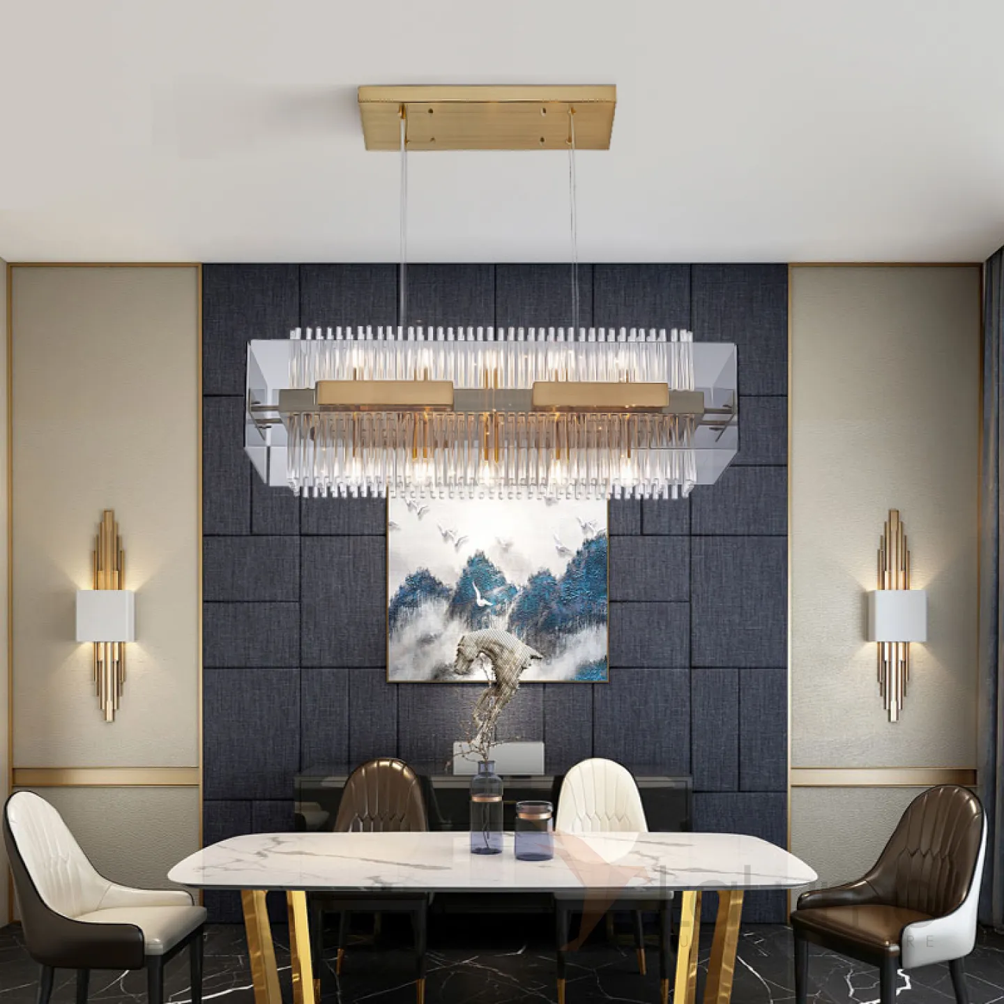 Реечный светильник с плафоном из тонких стеклянных трубочек внутри прямоугольного каркаса из стекла SELLA LONG