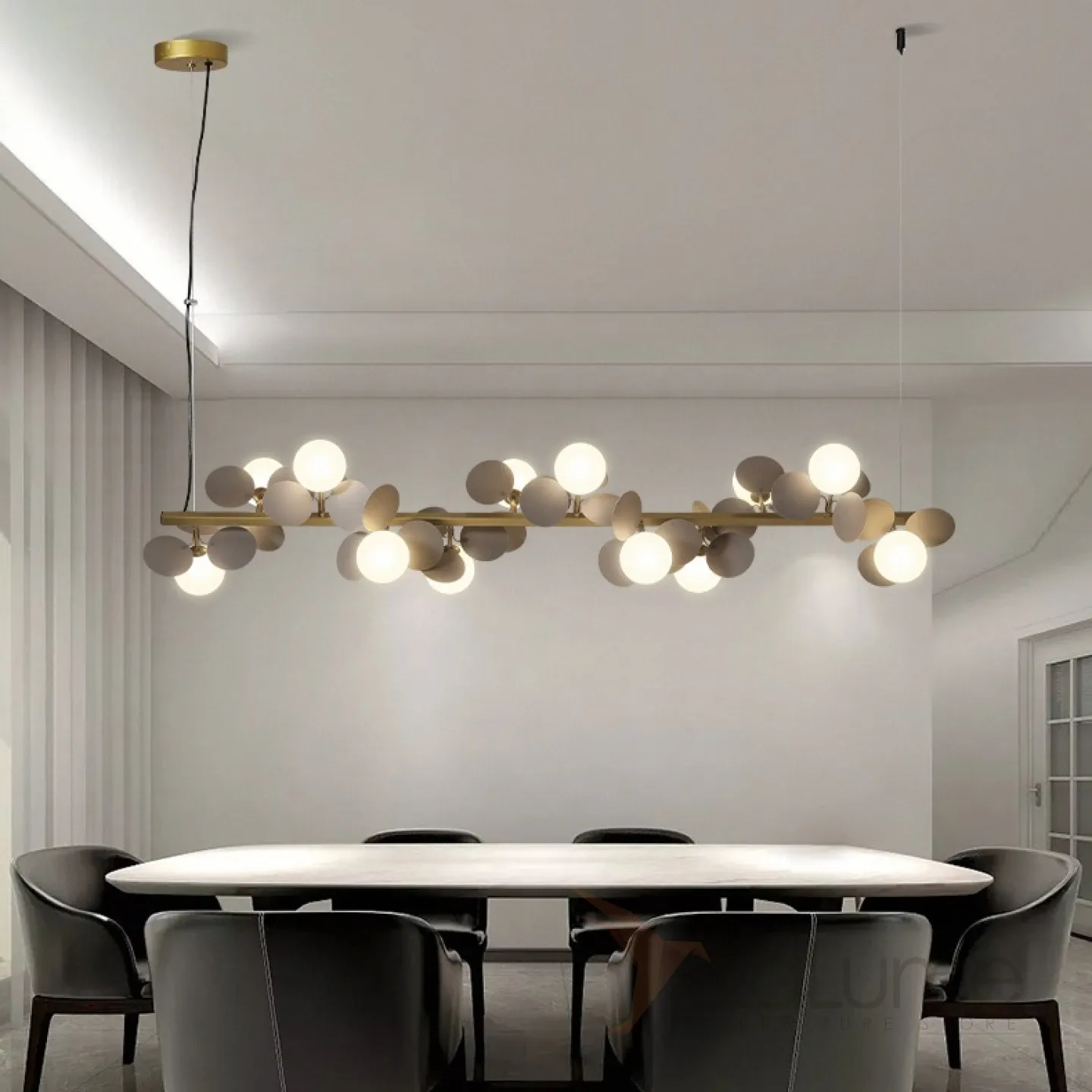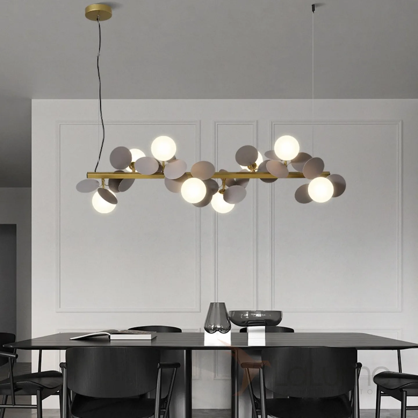 Рядный светильник с шарообразными матовыми плафонами и декором в виде дисков MATISSE L SELF L75,5 Gray