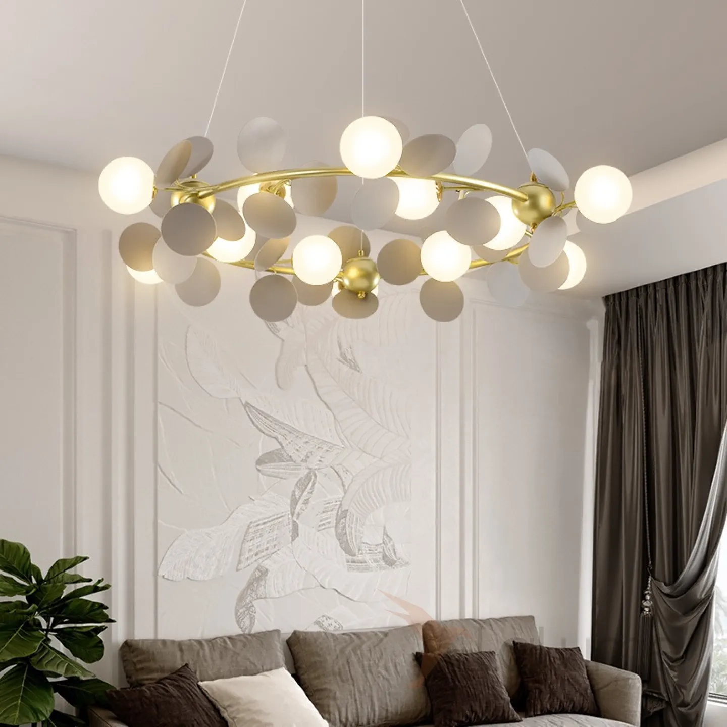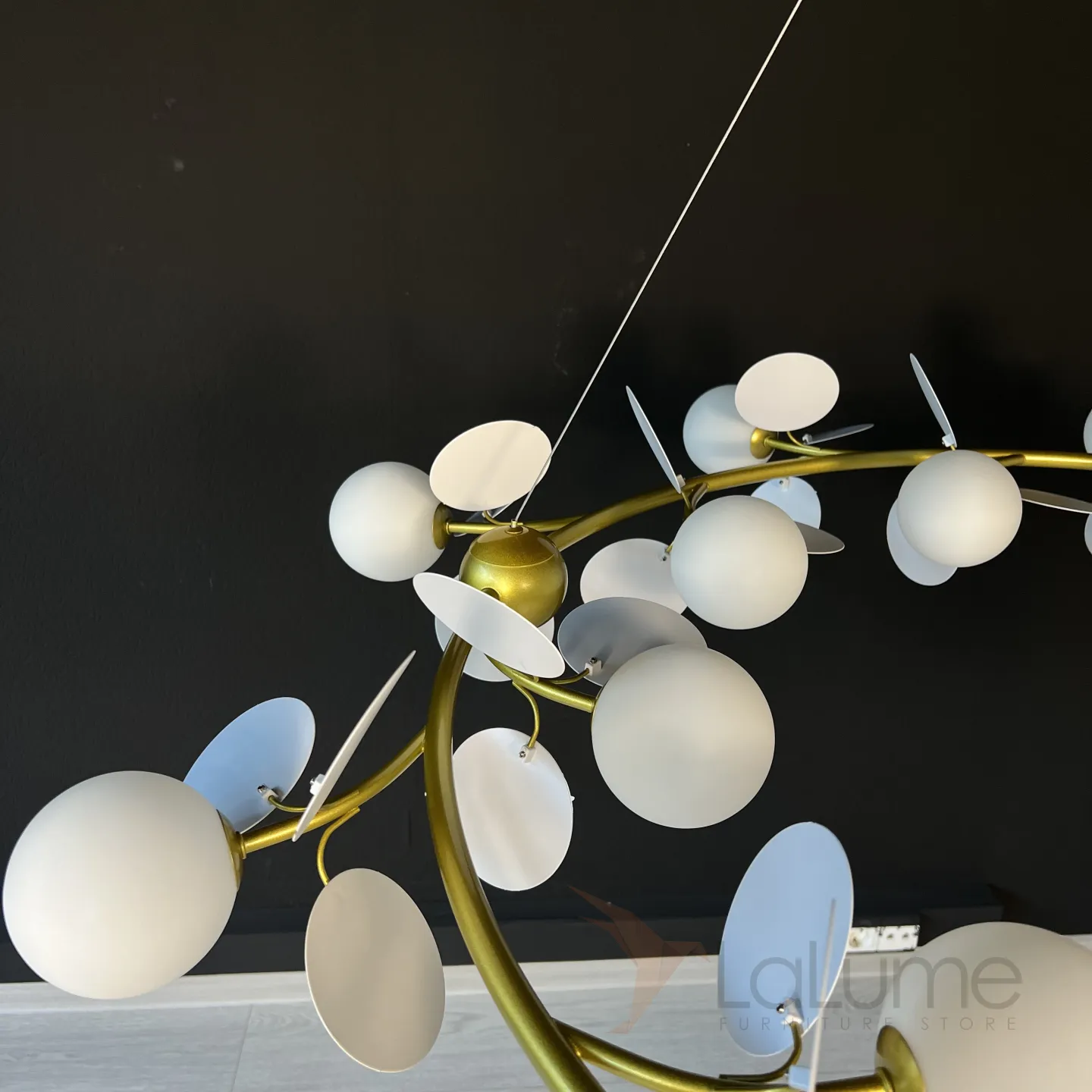 Кольцевая люстра MATISSE R SELF D70 из серии кольцевых люстр с шарообразными матовыми плафонами и декоративными дисками MATISSE R SELF