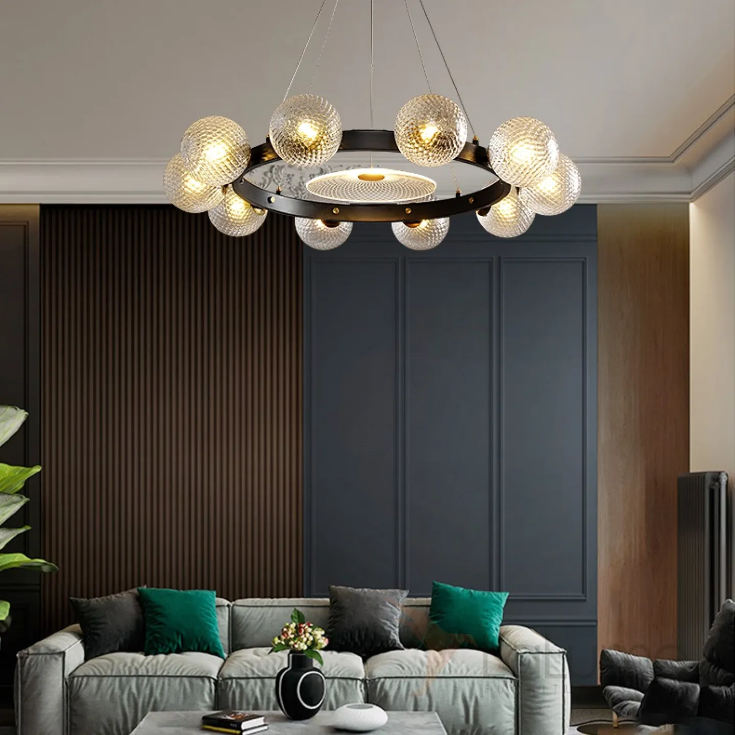 Серия люстр с шарообразными ребристыми плафонами из стекла и светодиодным диском в центре GIANTS