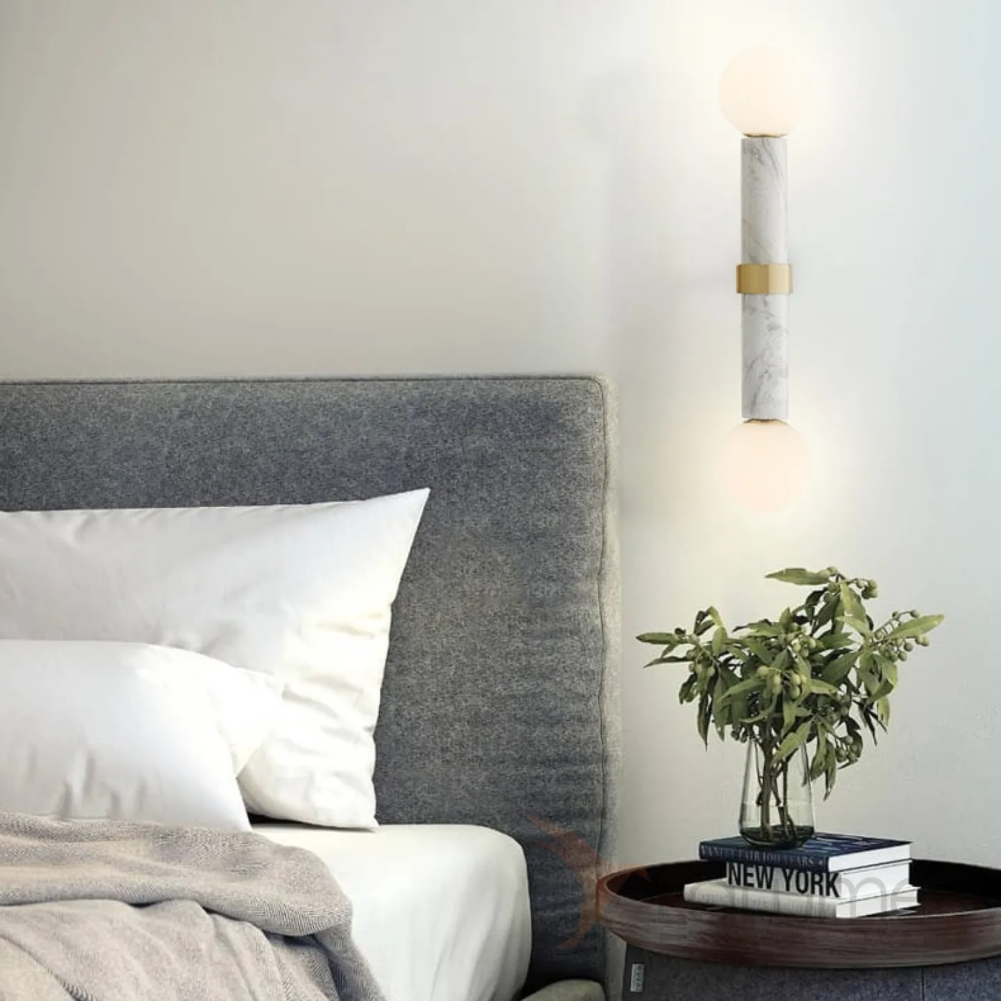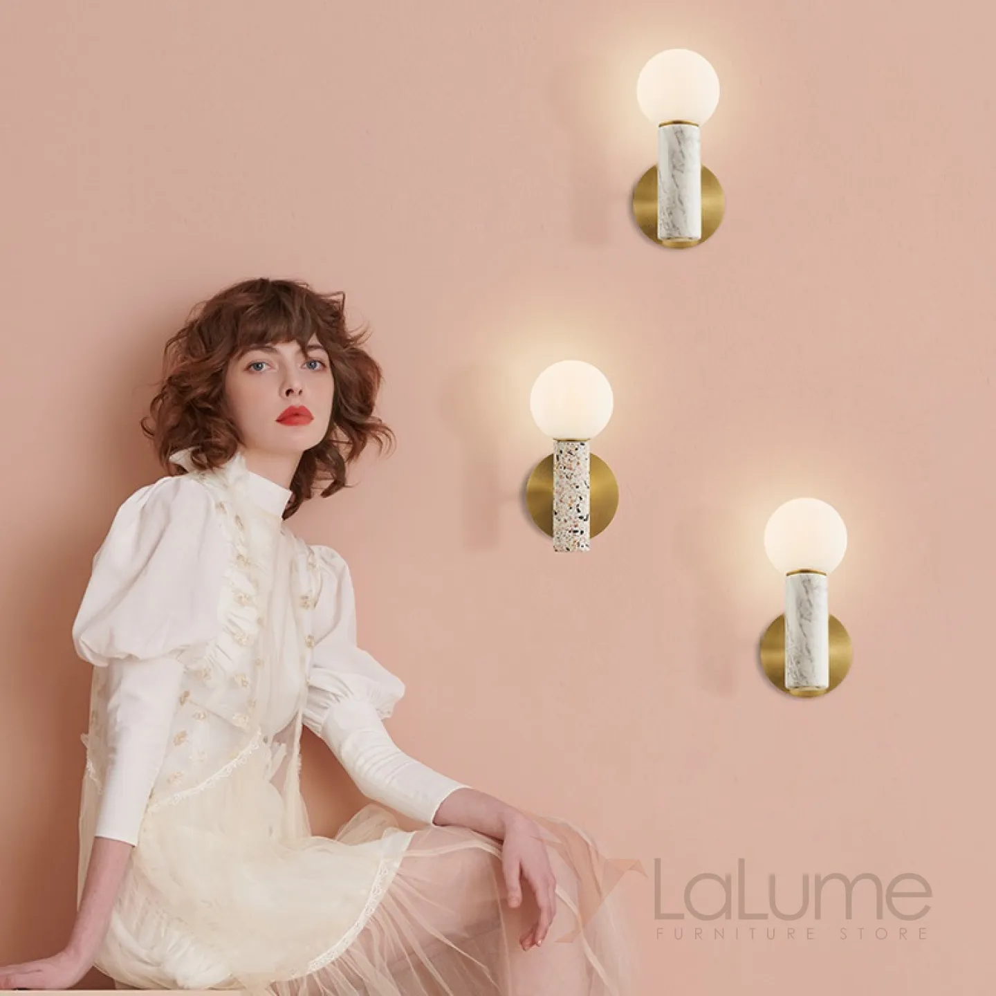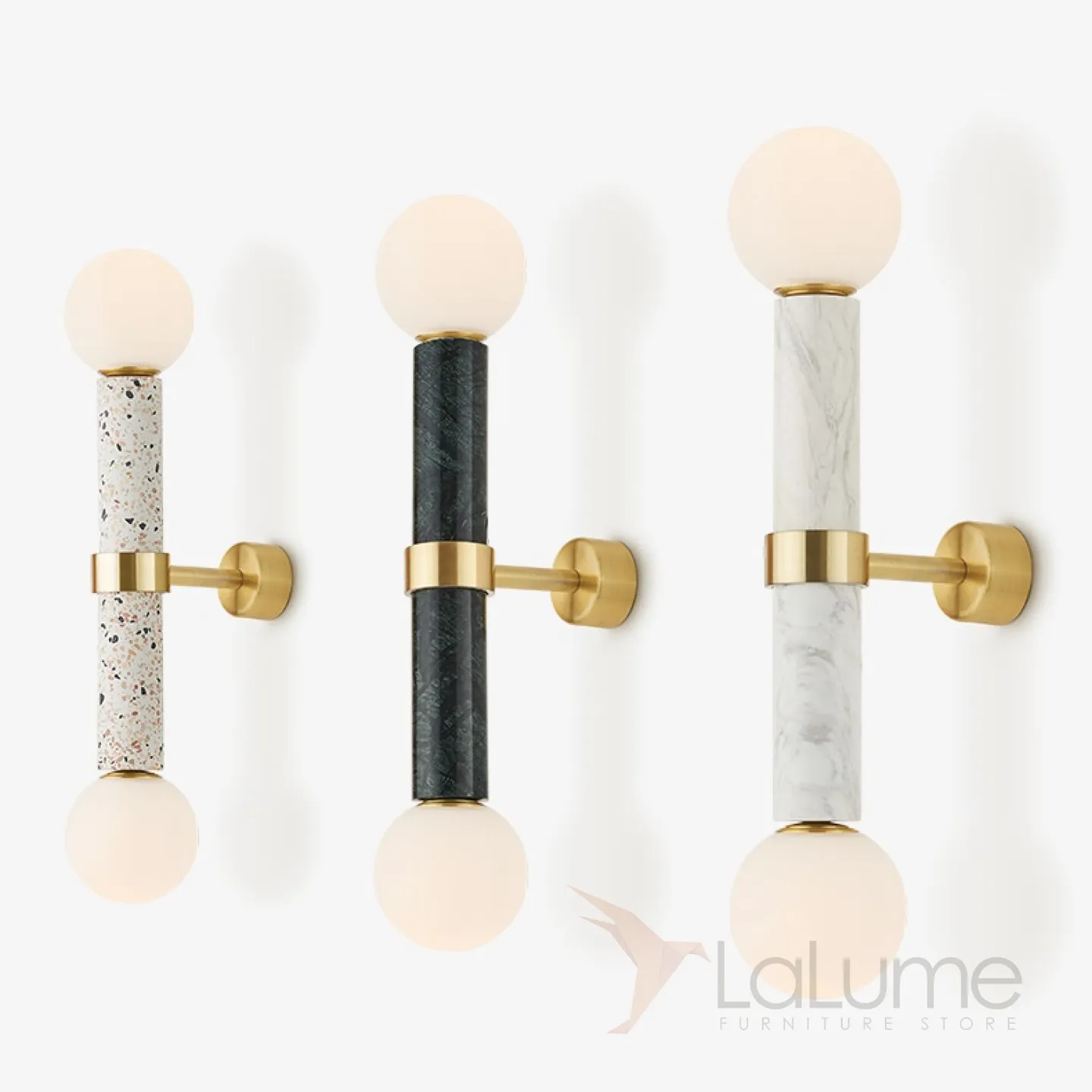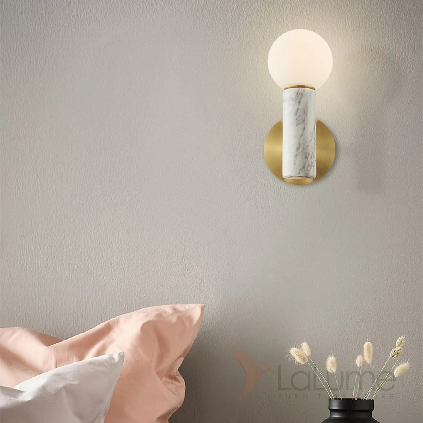 Серия настенных светильников из мрамора с матовым круглым плафоном MERCY WALL. Цена указана за 1 светильник.