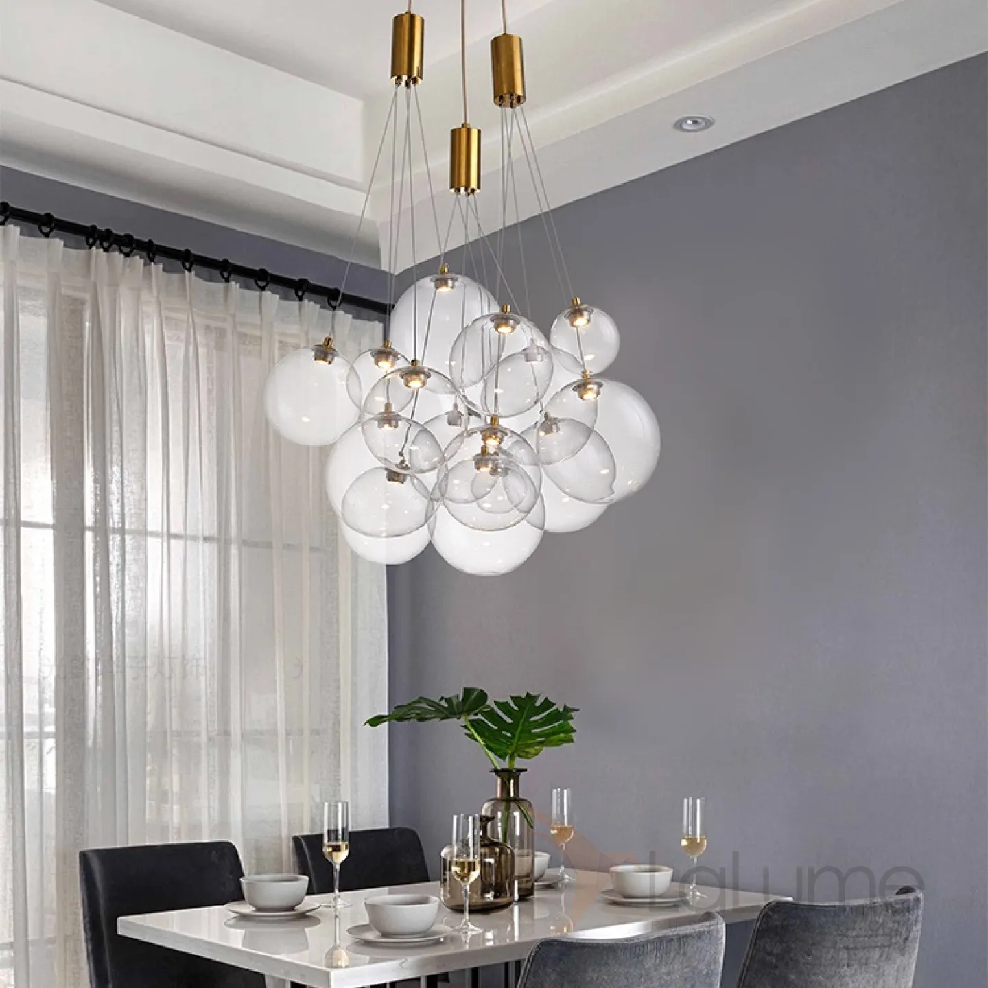 Серия светодиодных подвесных светильников в виде комбинаций прозрачных шарообразных плафонов разного диаметра JODIS