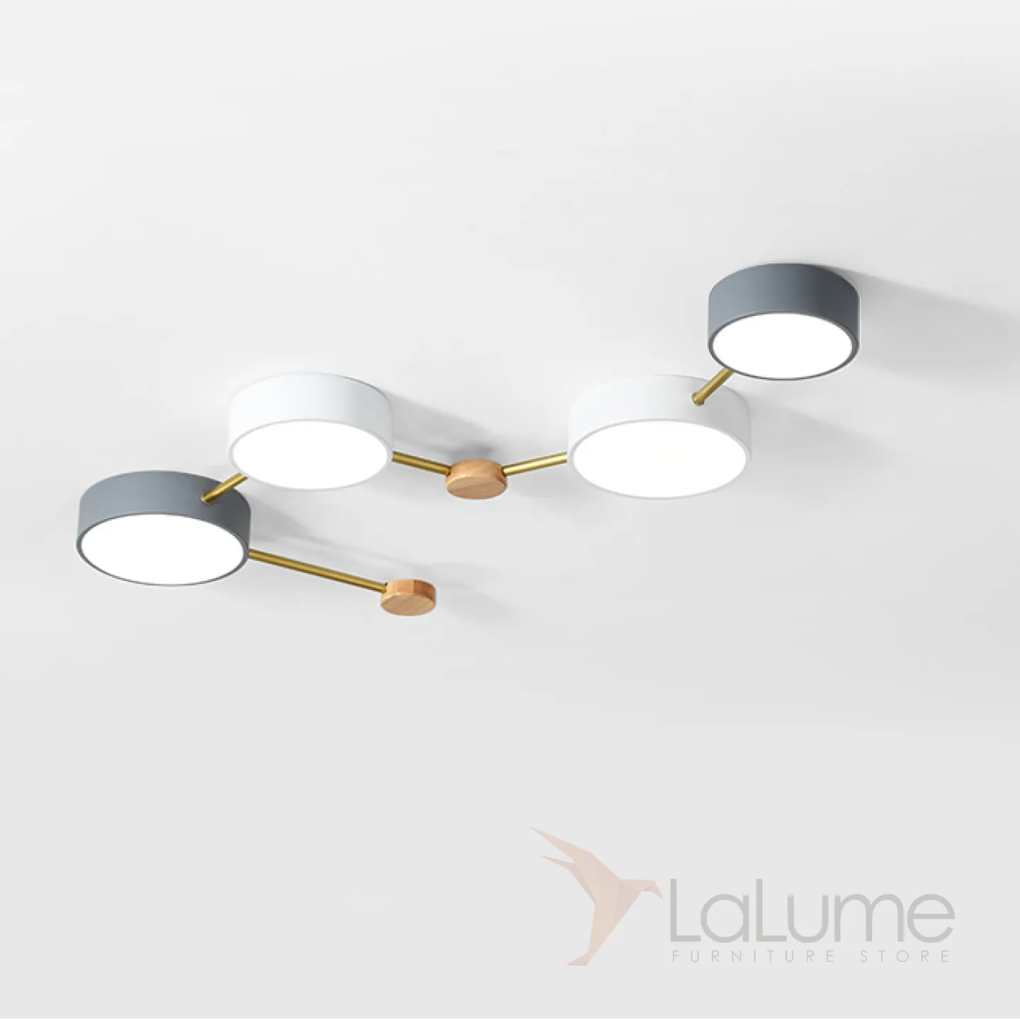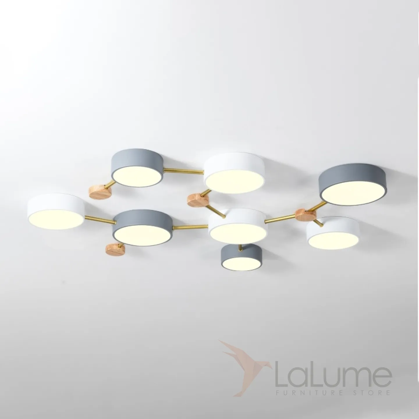 Потолочные инсталляции в форме созвездий из светодиодных дисков и деревянным декором SOLEN