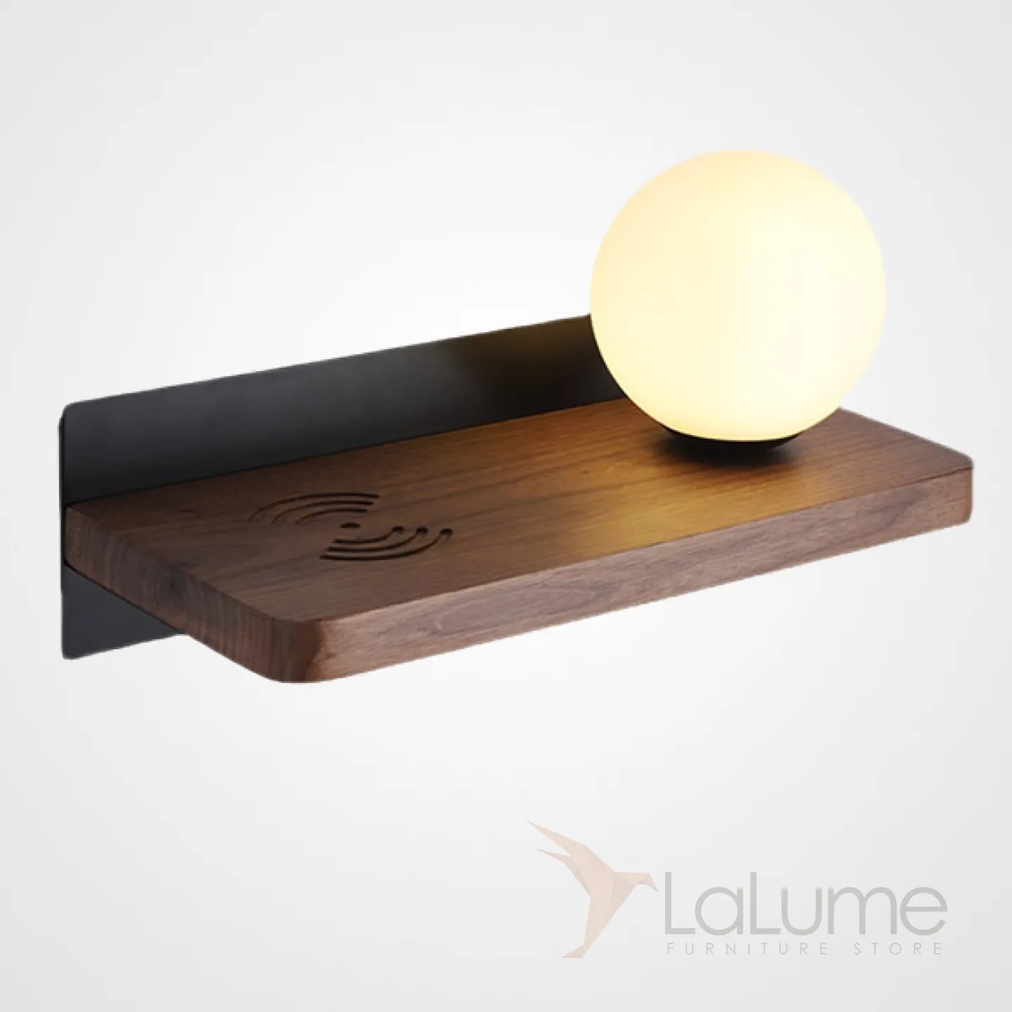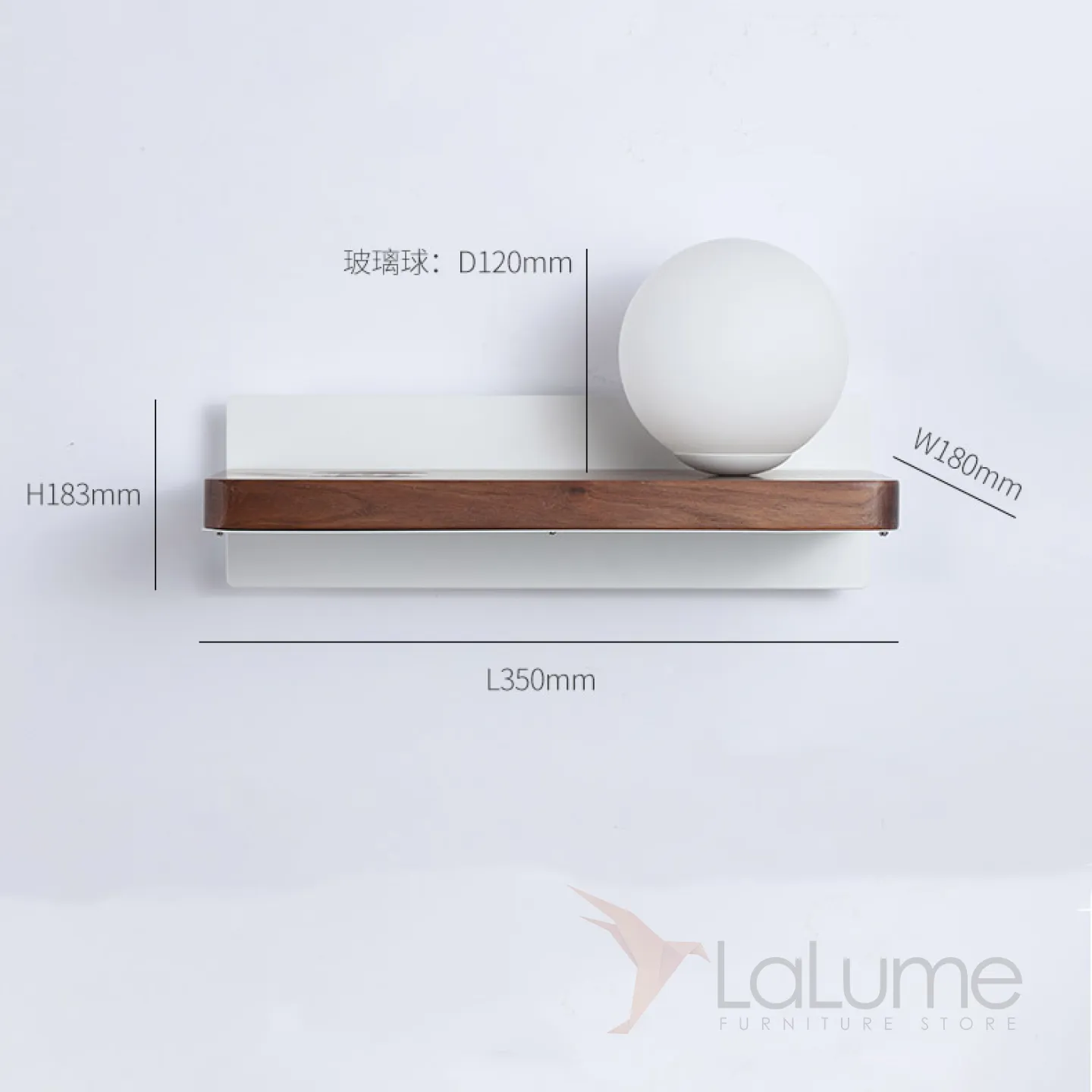 Светильник в виде деревянной настенной полочки с шарообразным плафоном из матового стекла TIDI. Цена указана за 1 светильник.