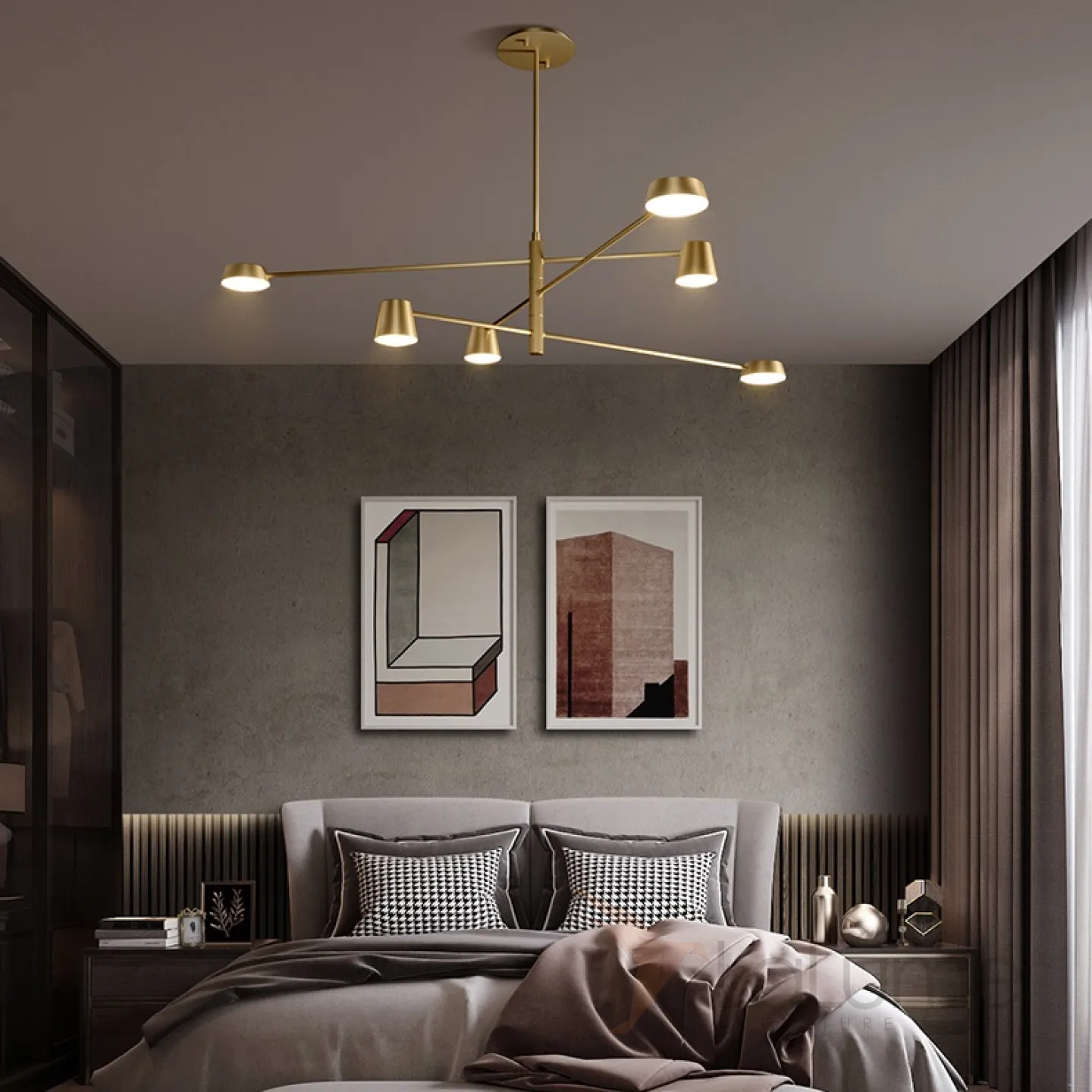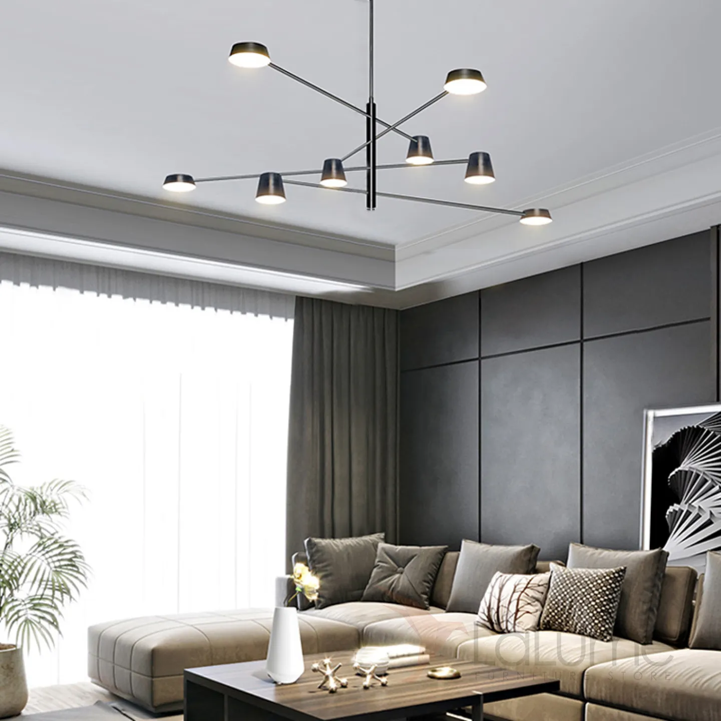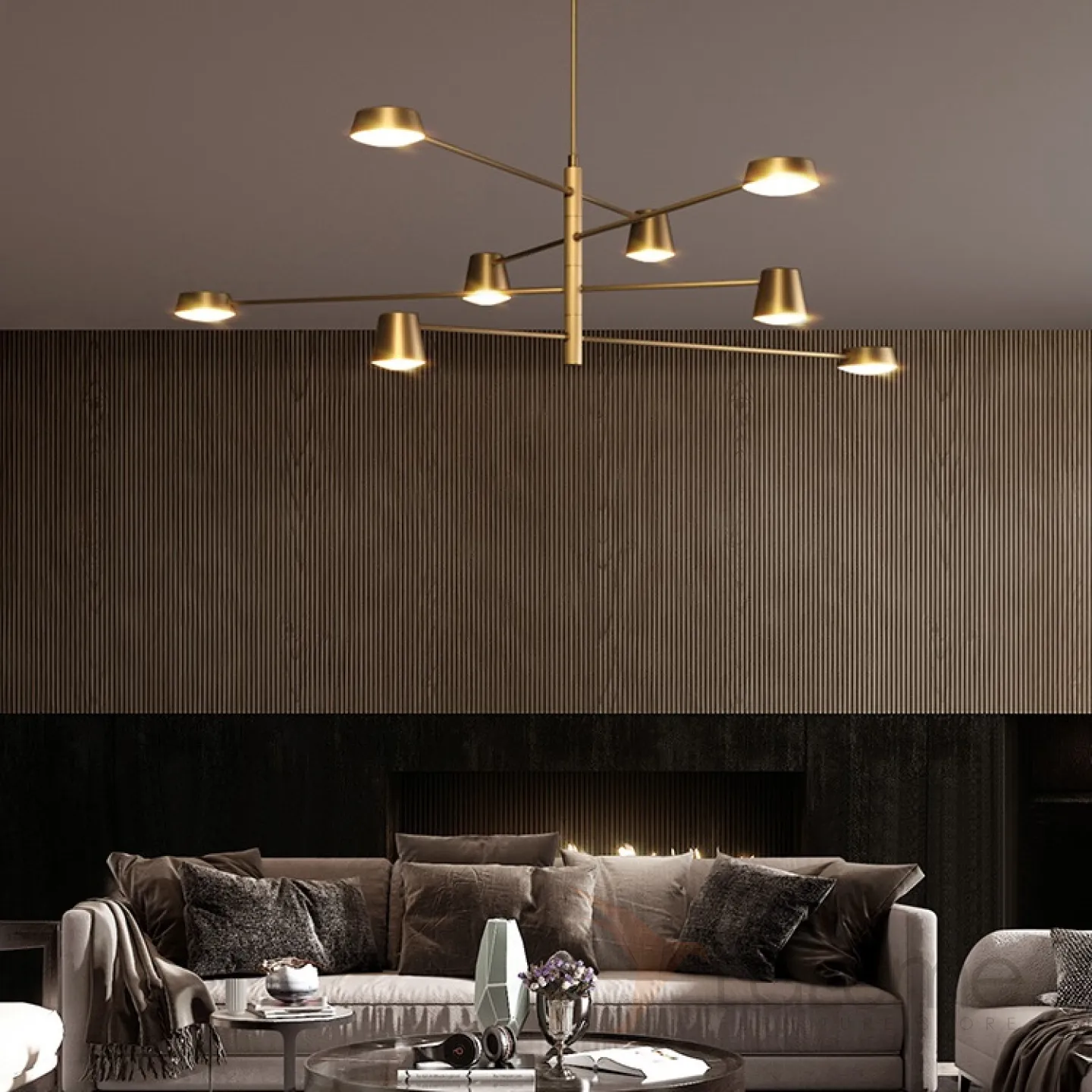 Светодиодная люстра с плафонами двух типов, расположенными на асимметоичных поворотных штангах TOIVOLA B
