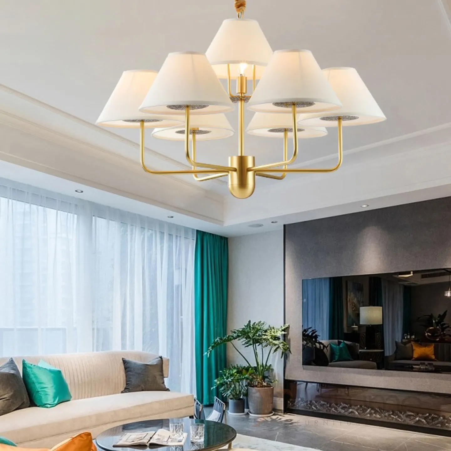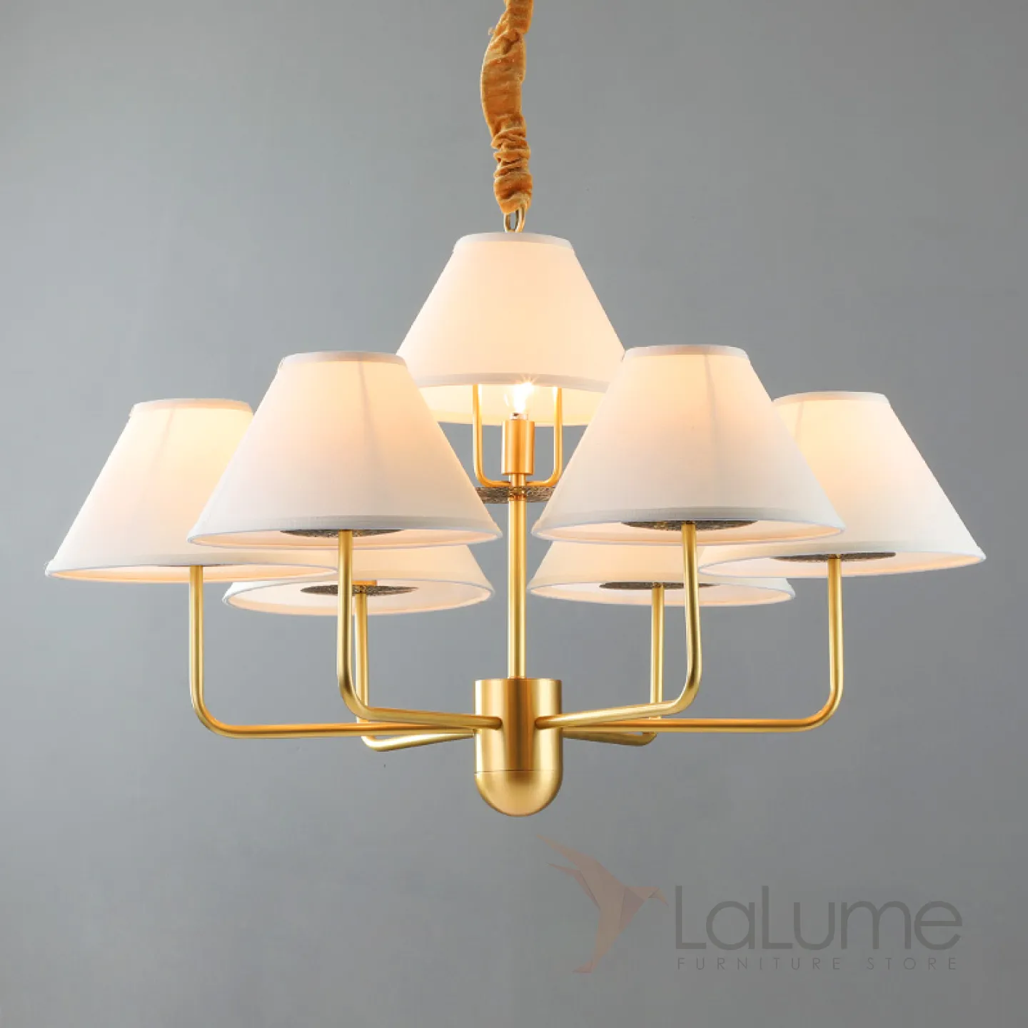 Серия люстр в американском стиле с текстильным абажуром на каркасе из металла TOWNER